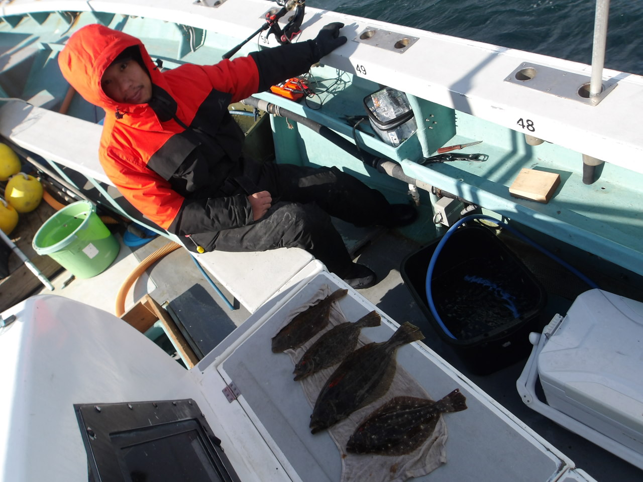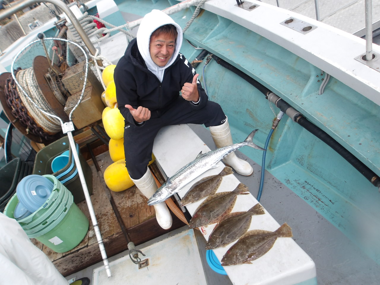 1年中、フグ、アジ、サバ、メバル、イサキ、スルメイカ、タイ、ハマチ、タチウオなど、さまざまな釣りが楽しめます。季節によっては4隻の船が出航しています。 法定の定員は各船とも35人ですが、ゆったりと船を利用していただくため、制限を25人にしております。