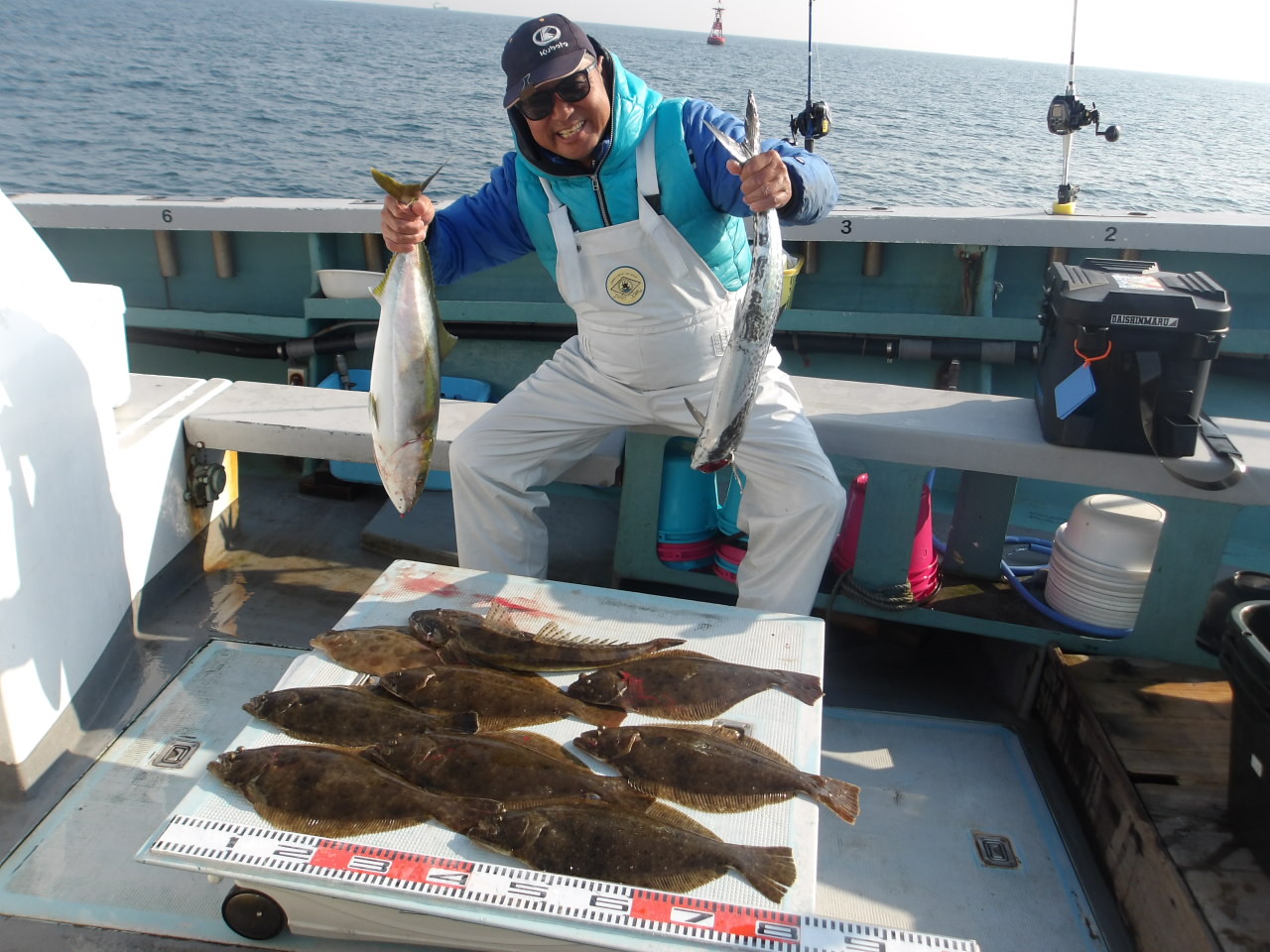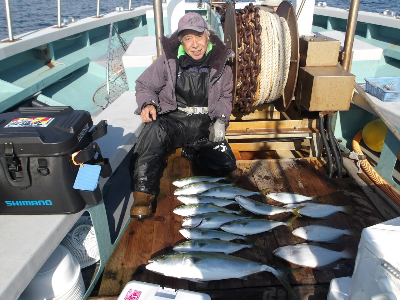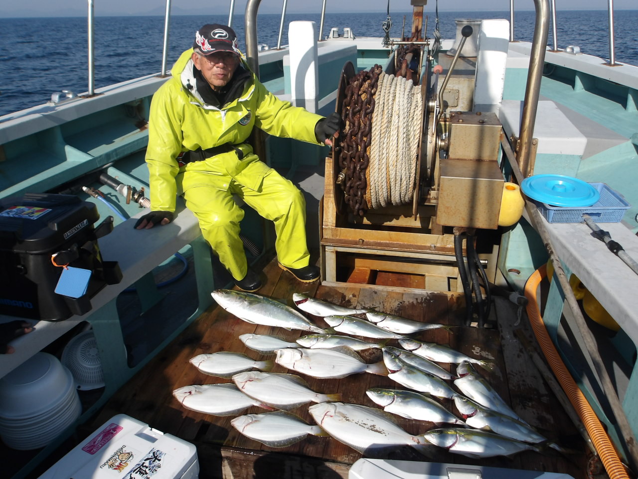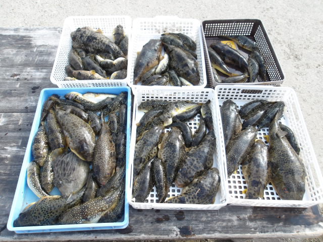 1年中、フグ、アジ、サバ、メバル、イサキ、スルメイカ、タイ、ハマチ、タチウオなど、さまざまな釣りが楽しめます。季節によっては4隻の船が出航しています。 法定の定員は各船とも35人ですが、ゆったりと船を利用していただくため、制限を25人にしております。