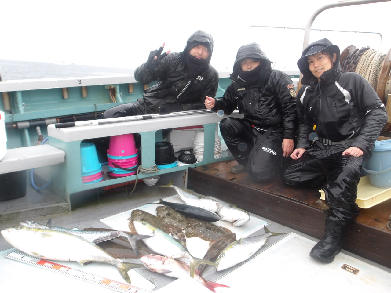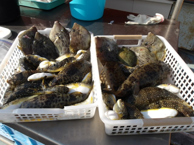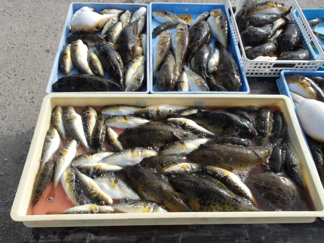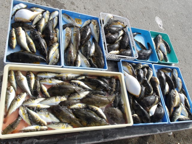 1年中、フグ、アジ、サバ、メバル、イサキ、スルメイカ、タイ、ハマチ、タチウオなど、さまざまな釣りが楽しめます。季節によっては4隻の船が出航しています。 法定の定員は各船とも35人ですが、ゆったりと船を利用していただくため、制限を25人にしております。