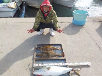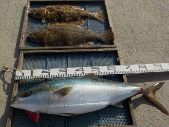波がありましたが、ぶり、サワラ、ヒラメ、真鯛、コチなどあがりましたよ!
