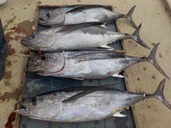 本日もトンボジギングコース出船致しましたよ~ 今日はビンチョウマグロ船中で20本とれましたよ!! バレやラインブレイクなどもありましたが1日楽しめましたよ~ やはりトンボの群れが入ってきましたね! 日に日に当たり数も増え7人同時ヒットなどもありました!! それでは明日も爆釣目指して頑張りますよ~乞うご期待!