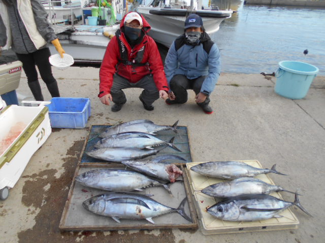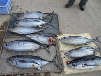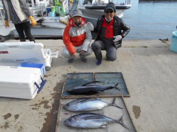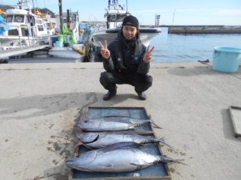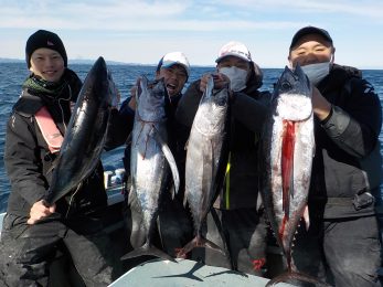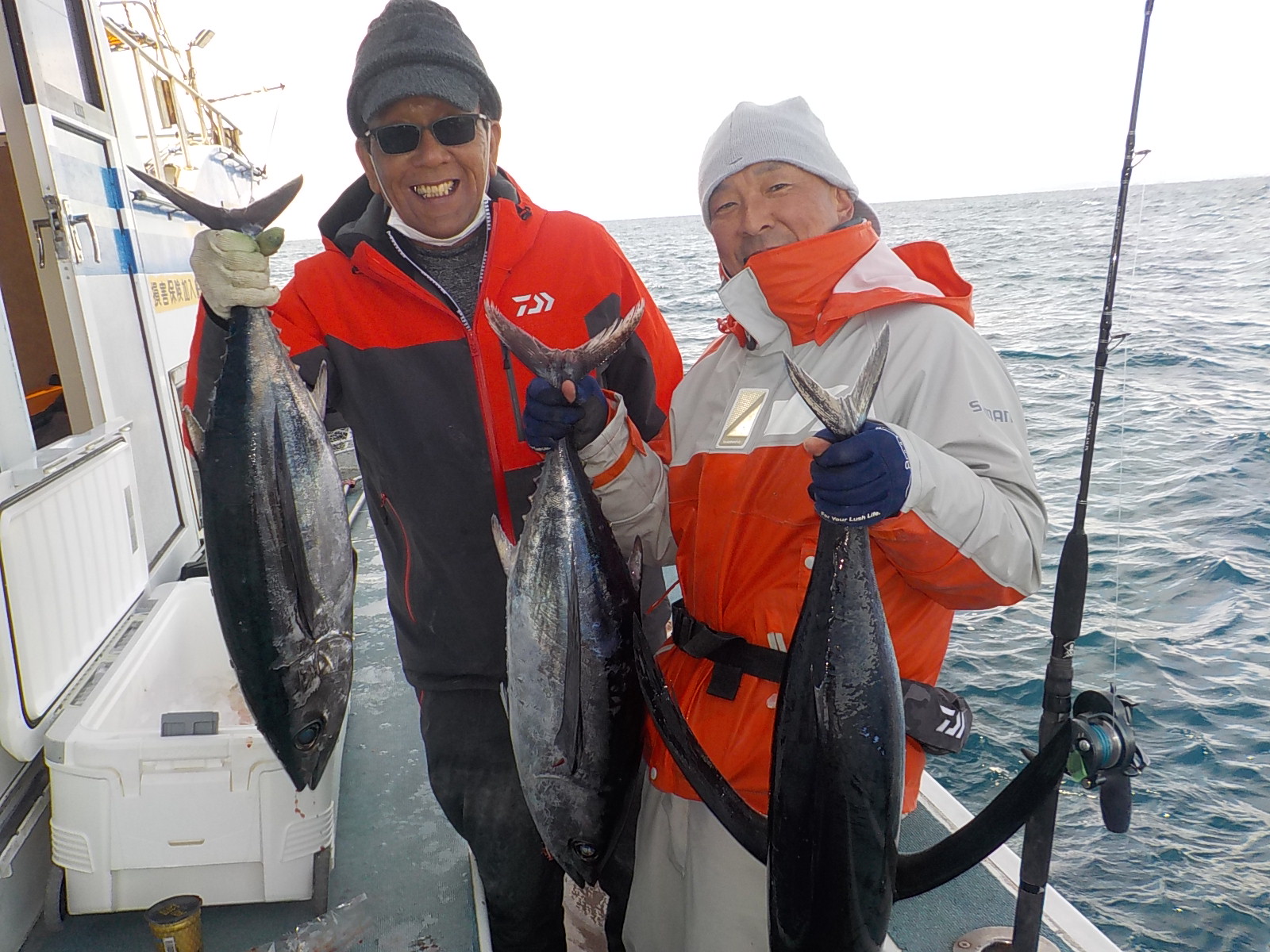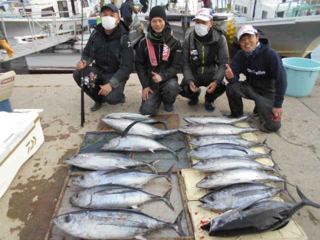 本日もトンボジギングコース出船致しましたよ~ トンボフェスティバル!! ビンチョウマグロ大漁だ~ 良い潮が入っておりますね! バレ、ラインブレイク多々ありましたが大爆釣でしたね!! 明日も最高のポイントへご案内致します! 明日2/26日(金)の残り6名様空きありますよ~ 釣れている間に是非一度お試しあれ~