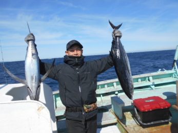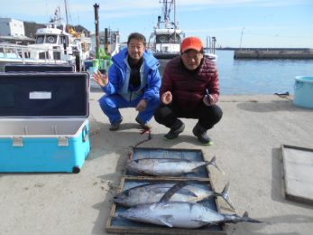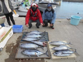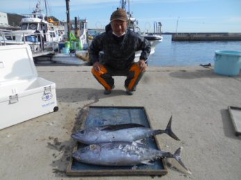 今日は釣具イシグロ様、ジギングメーカーBOZLES様ご乗船頂きました!やはり釣りはプロ級ですね! 休憩を挟んで4人で15本!!お見事でした!!