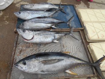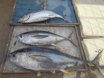 そして4隻中3隻がキハダヒット!30㎏40㎏じゃなく60~70㎏のサイズ!1匹は水面まで見えたのですがリーダーが切れちゃいました・・・