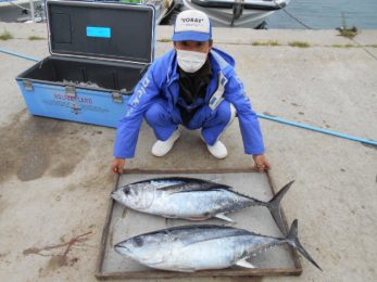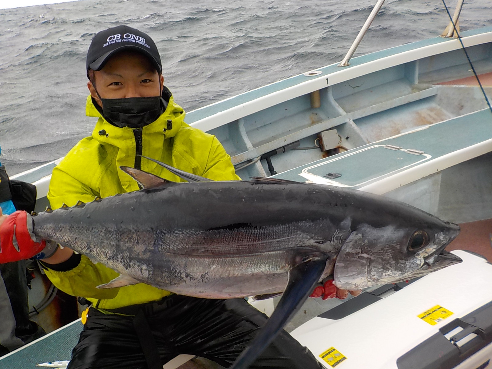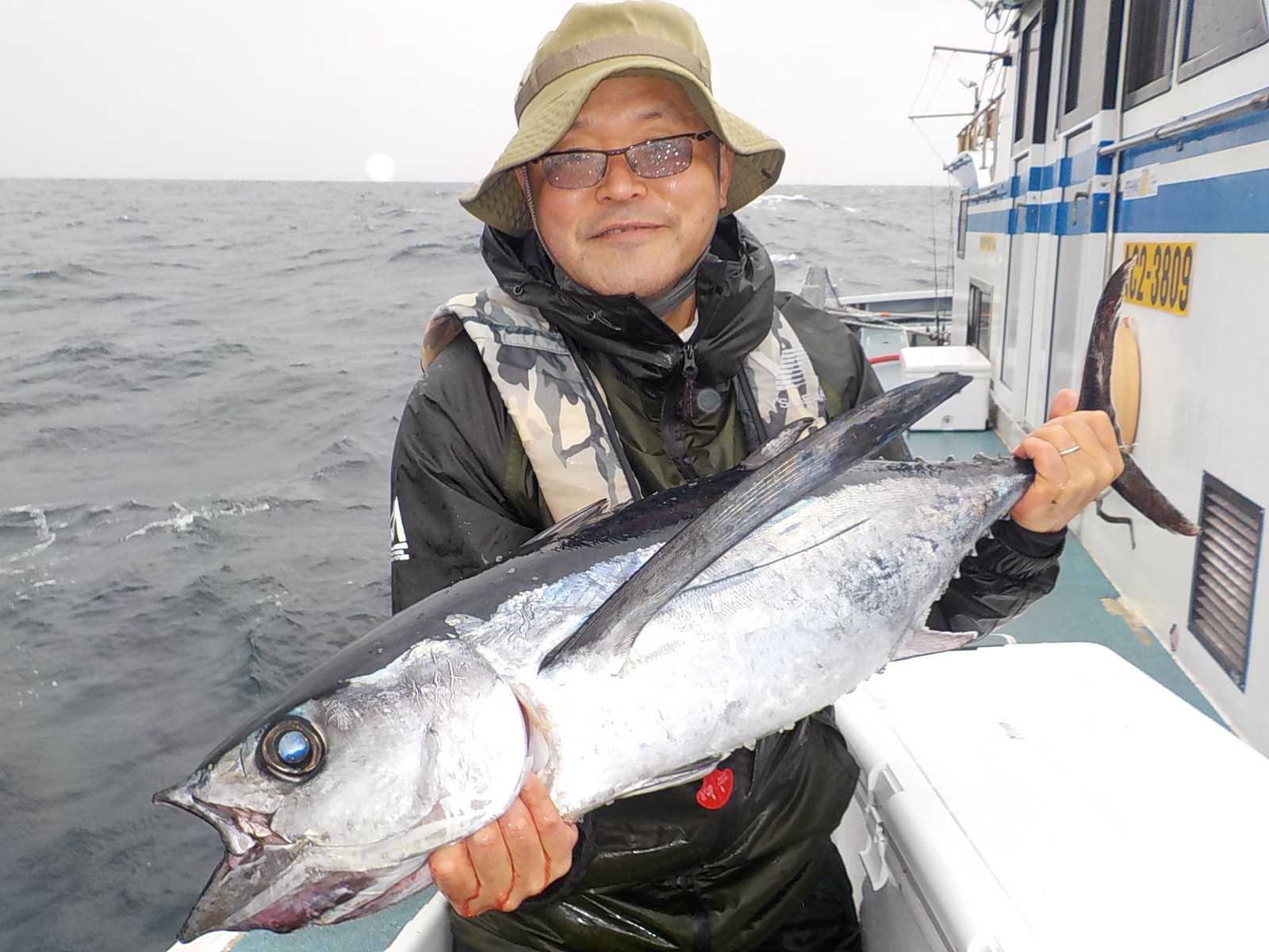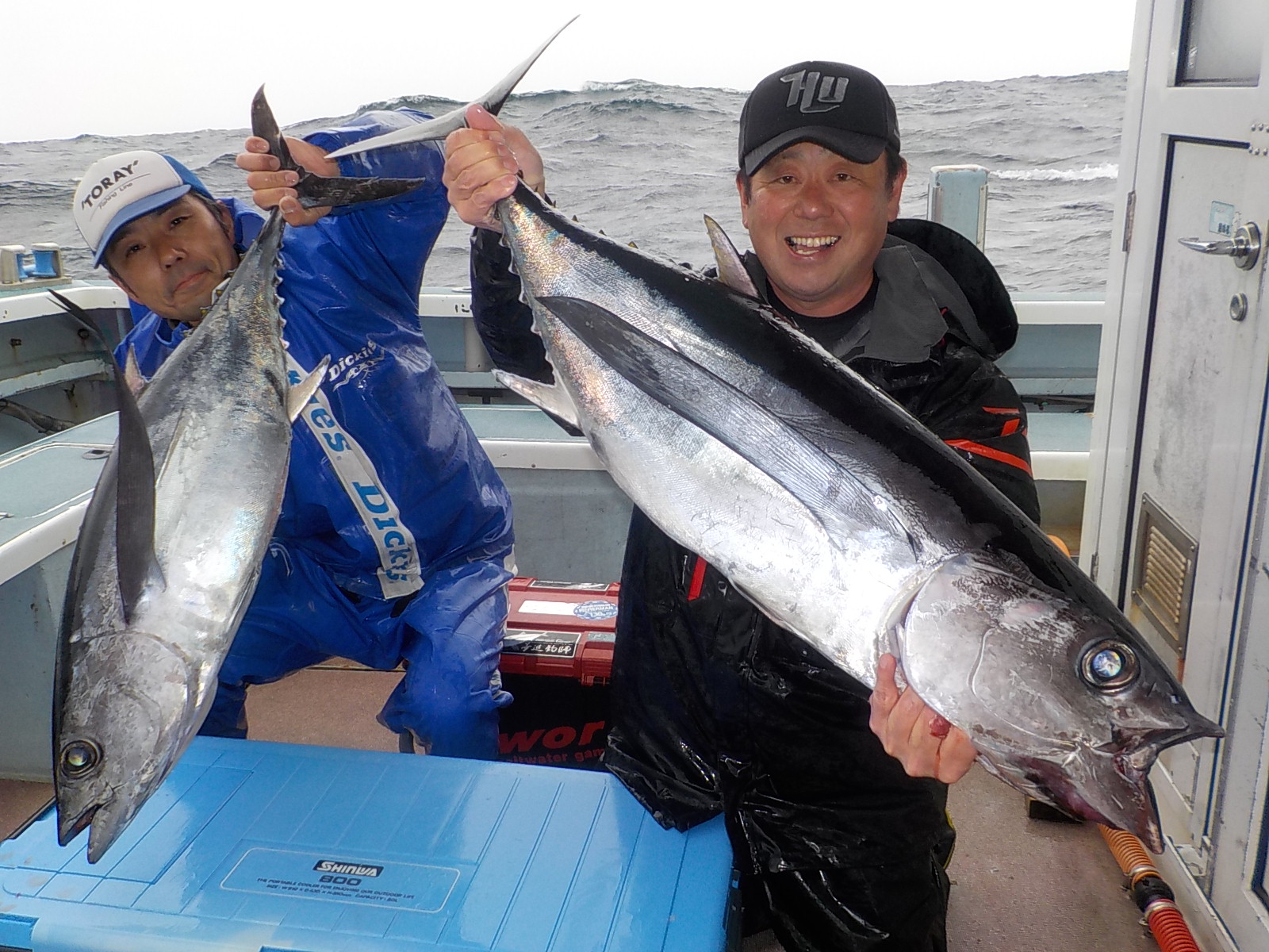 本日もトンジギ出船致しましたよ~ 波が高く皆様の安全第一を優先し少々早めの終了となりました! 重たい450g以上の重たいジグのほうが当たりやすかったようですね! 悪条件の中ビンチョウマグロあがりましたよ!! ベイト反応もありますので潮、天候次第で釣れると思いますよ~ 明日は予報が悪そうなので臨時休船とさせて頂きます! お電話が繋がらないお客様がいます!一度大進丸へお電話下さいね! 次回の出船は明後日4/18日(日)出船致します!