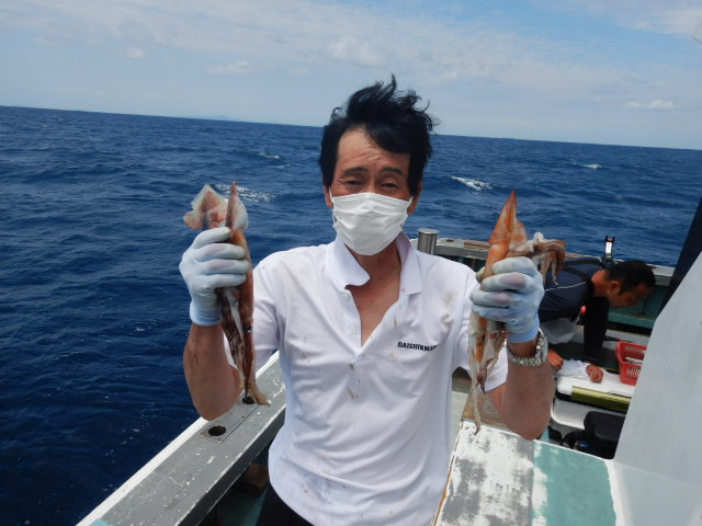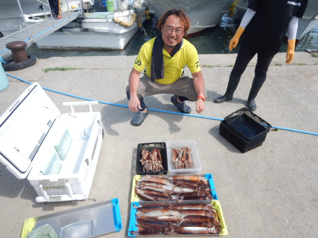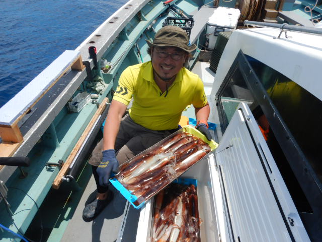 本日もスルメイカ釣りコース出船致しましたよ~! お客様少人数での操業でした! 群れはあるものの1回、2回釣ると群れの泳ぐスピードが速くなり難しかったですね。 それでも皆様お土産確保できました! 明日も絶好のスルメイカ釣り日和!! 群れは入ってきましたので明日6/22日(火)ご予約入れば出船致します! まだまだ空き多数ありますので宜しくお願いします!!