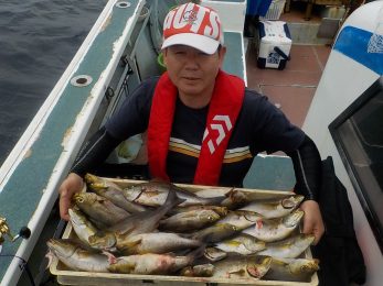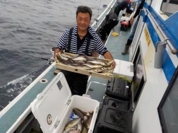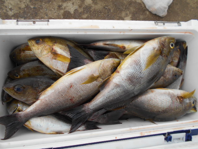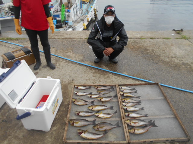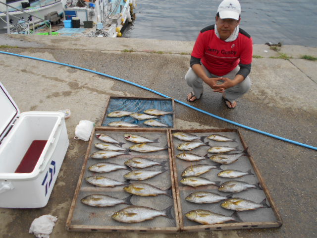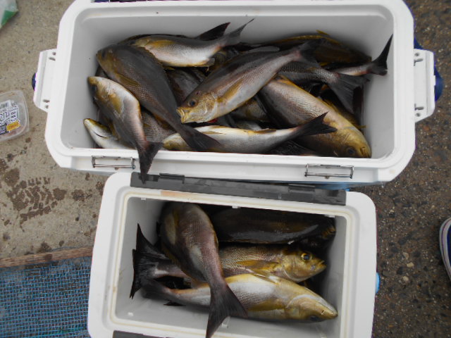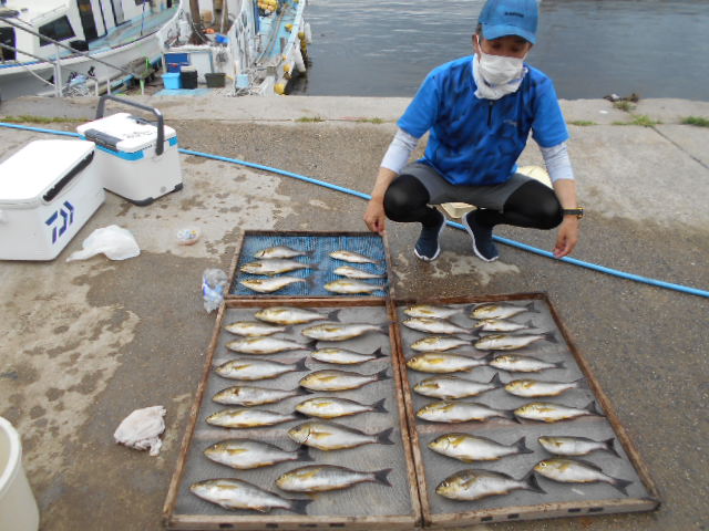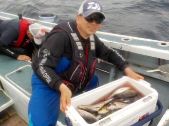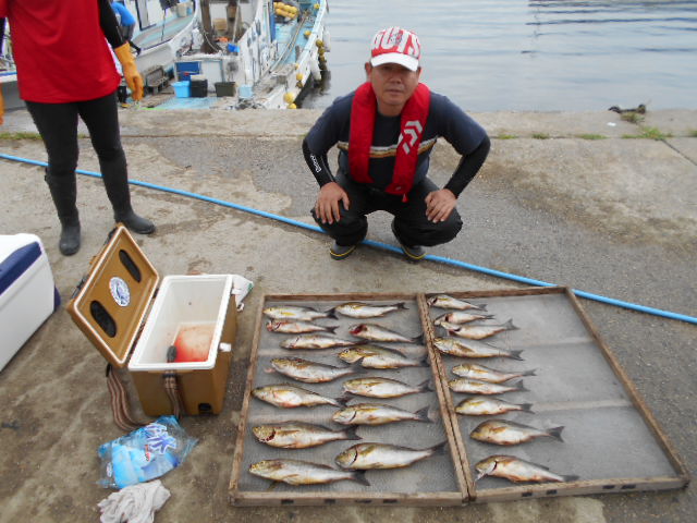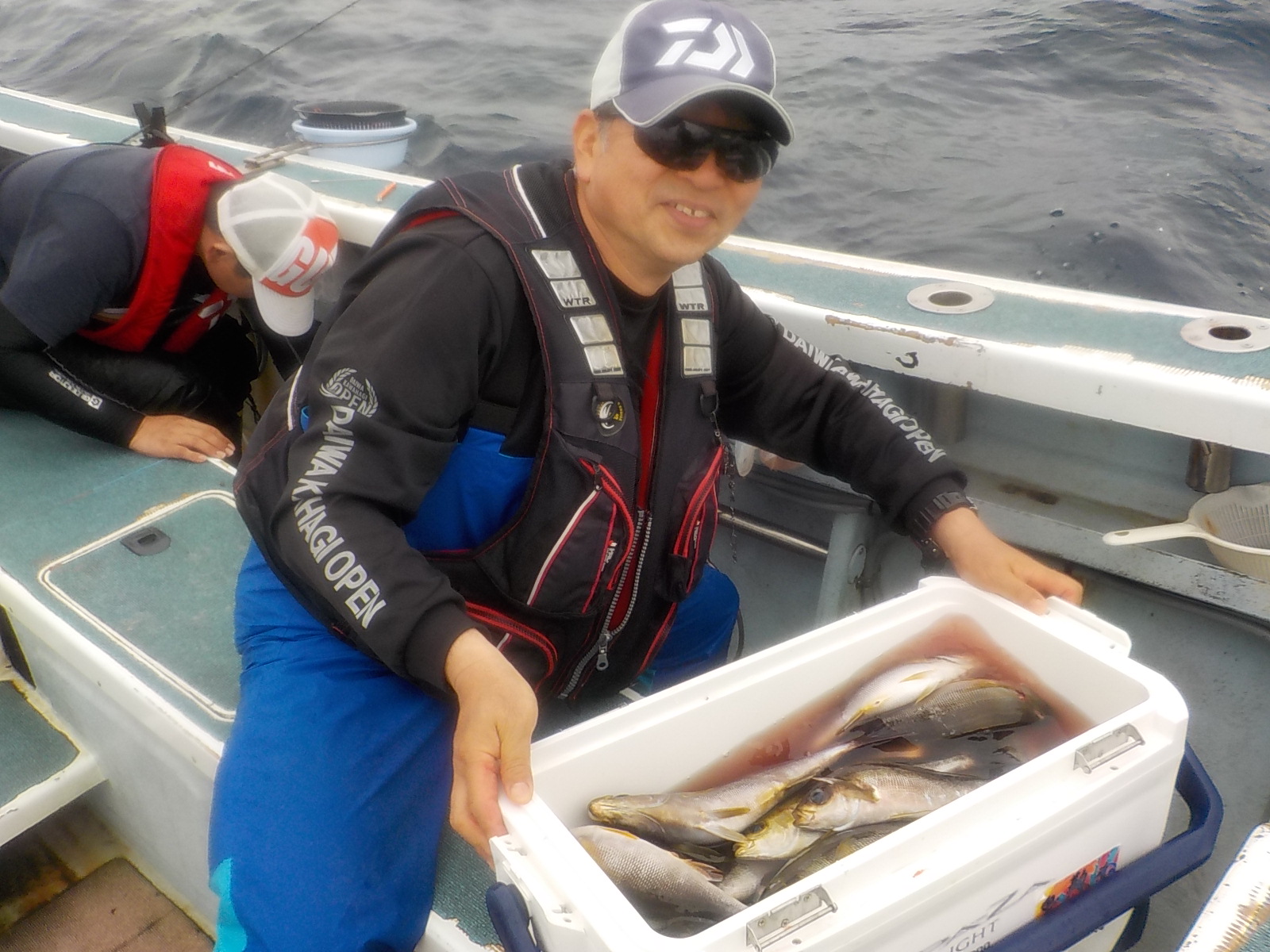 本日もイサキ釣りコース出船致しましたよ~ 絶好のイサキ釣り日和で大爆釣だ!! イサキのポイントはそこまで雨も降らず、波風なく最高の日でしたよ! 仕掛けを落とせばイサキが釣れる、釣れる面白いほど~ 竿頭様48匹を頭にクーラー満タンの方が続々・・・ 明日も最高のポイントへご案内致します! 明日6/28日(月)は平日となりまだまだ空き多数ありますので宜しくお願いします!!