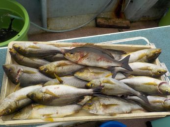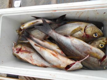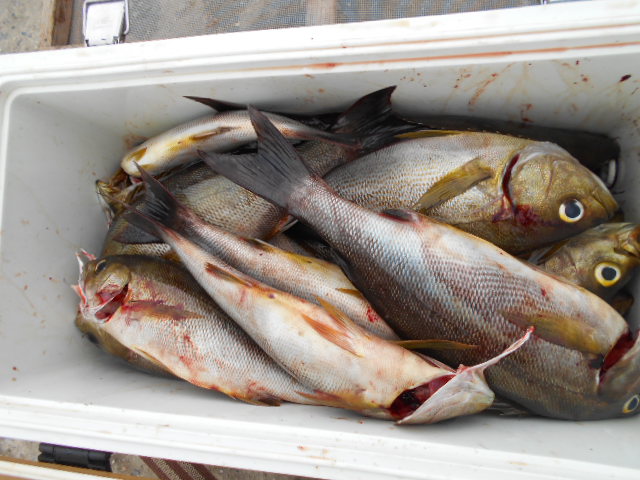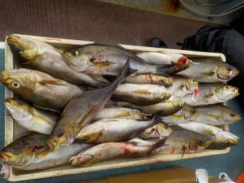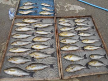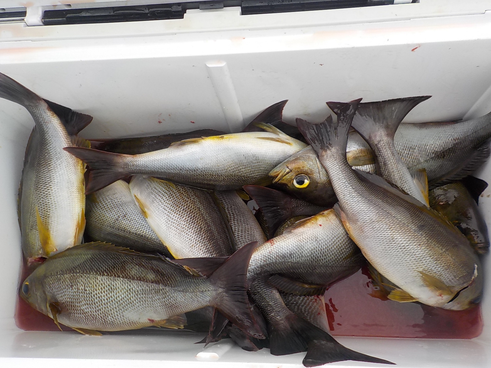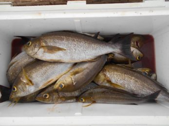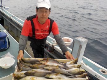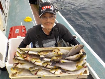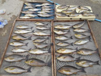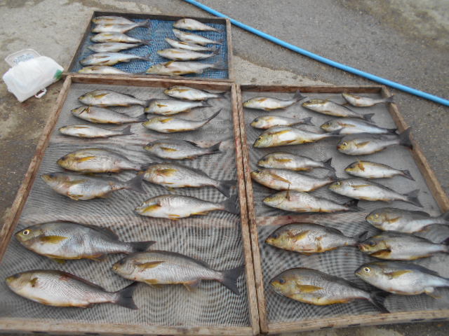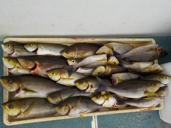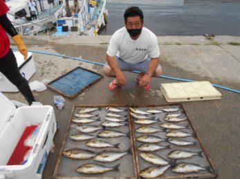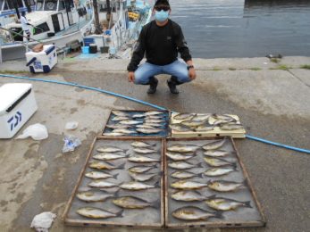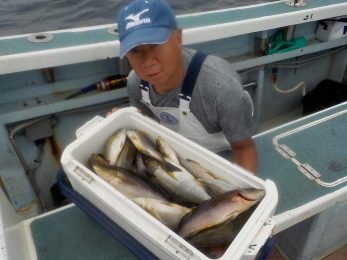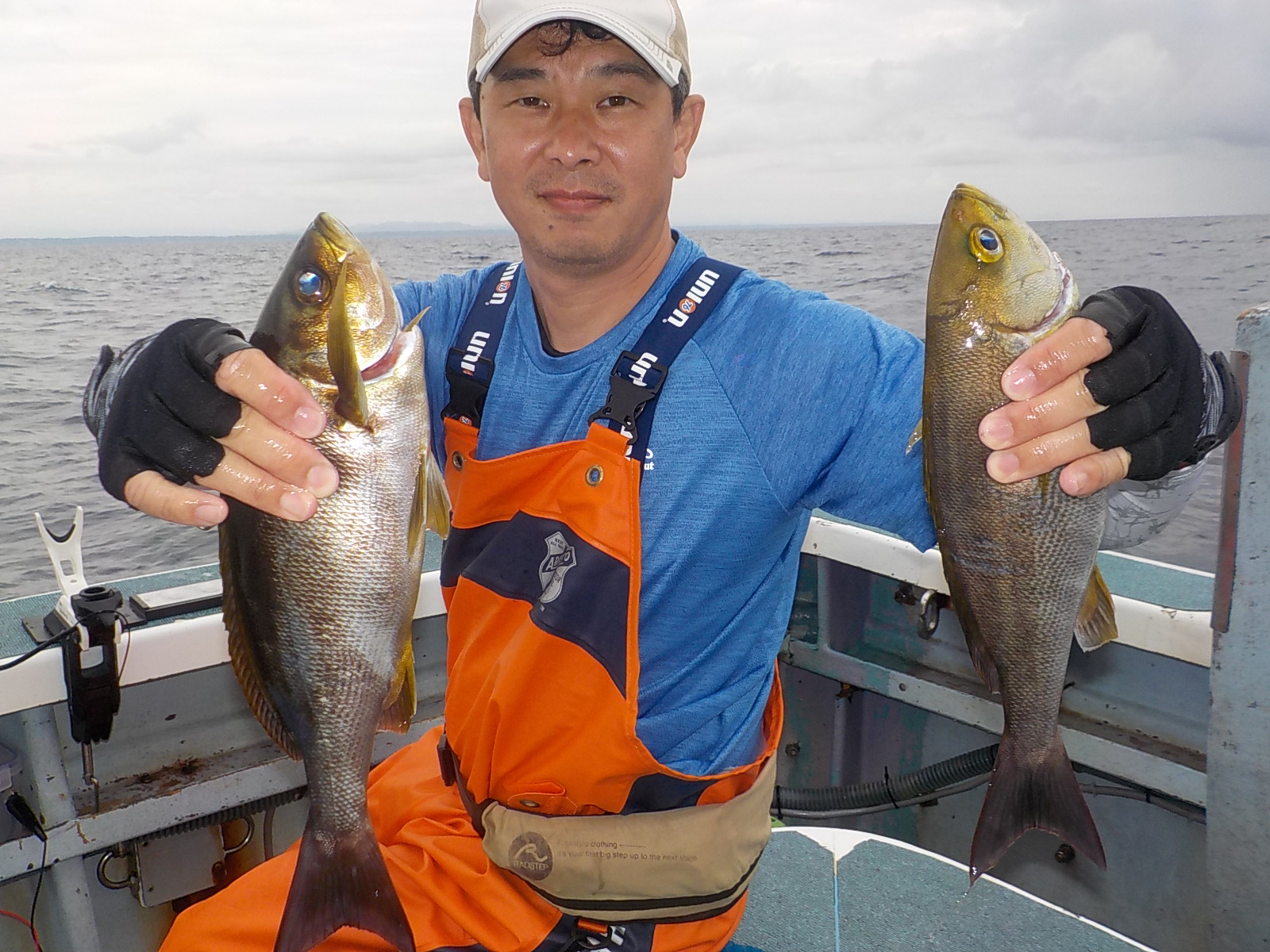 本日もイサキ釣りコース出船致しましたよ~ 絶好のイサキ釣り日和で大爆釣だ!! イサキのポイントはそこまで雨も降らず、波風なく最高の日でしたよ! 仕掛けを落とせばイサキが釣れる、釣れる面白いほど~ 竿頭様48匹を頭にクーラー満タンの方が続々・・・ 明日も最高のポイントへご案内致します! 明日6/28日(月)は平日となりまだまだ空き多数ありますので宜しくお願いします!!
