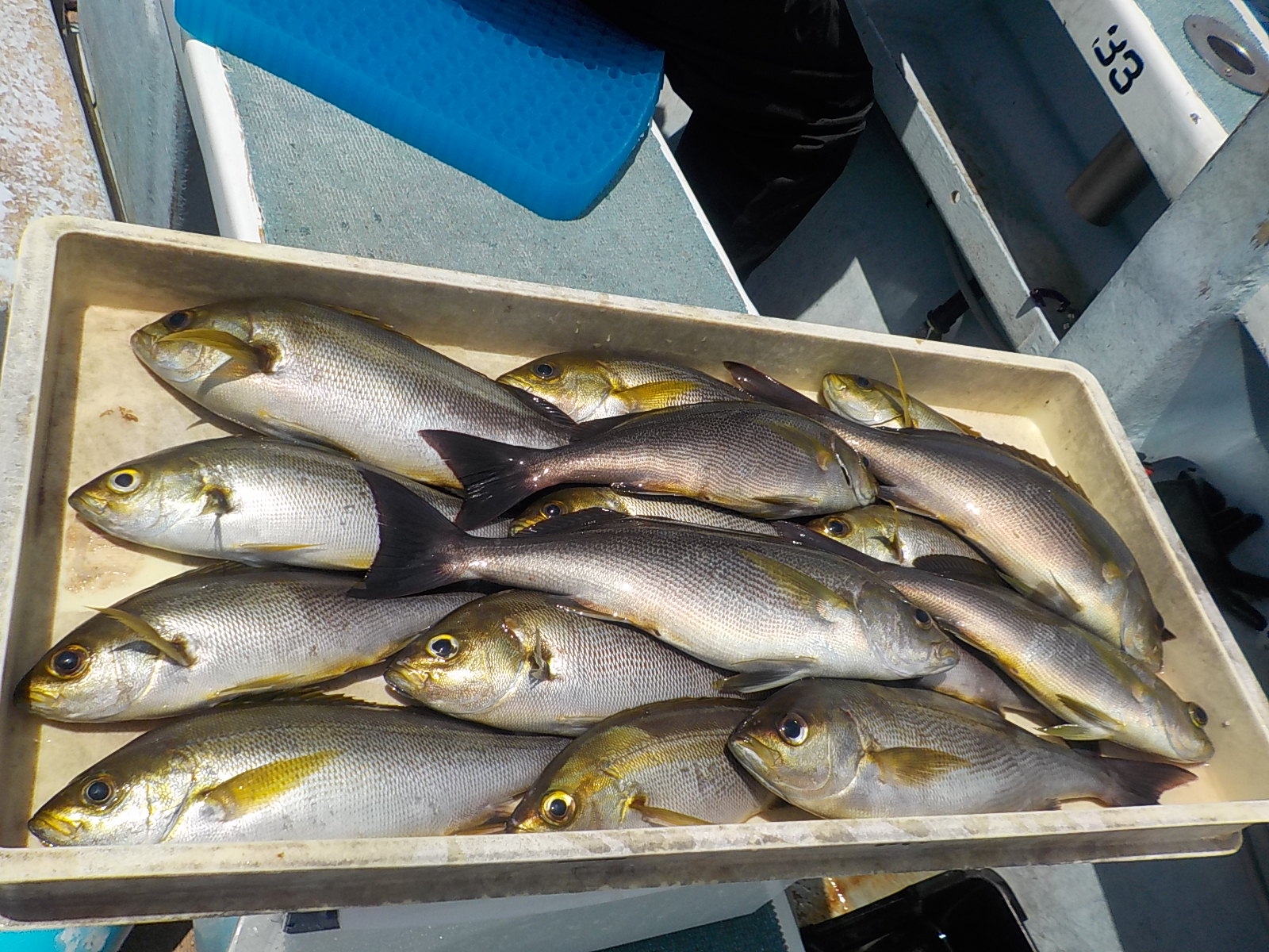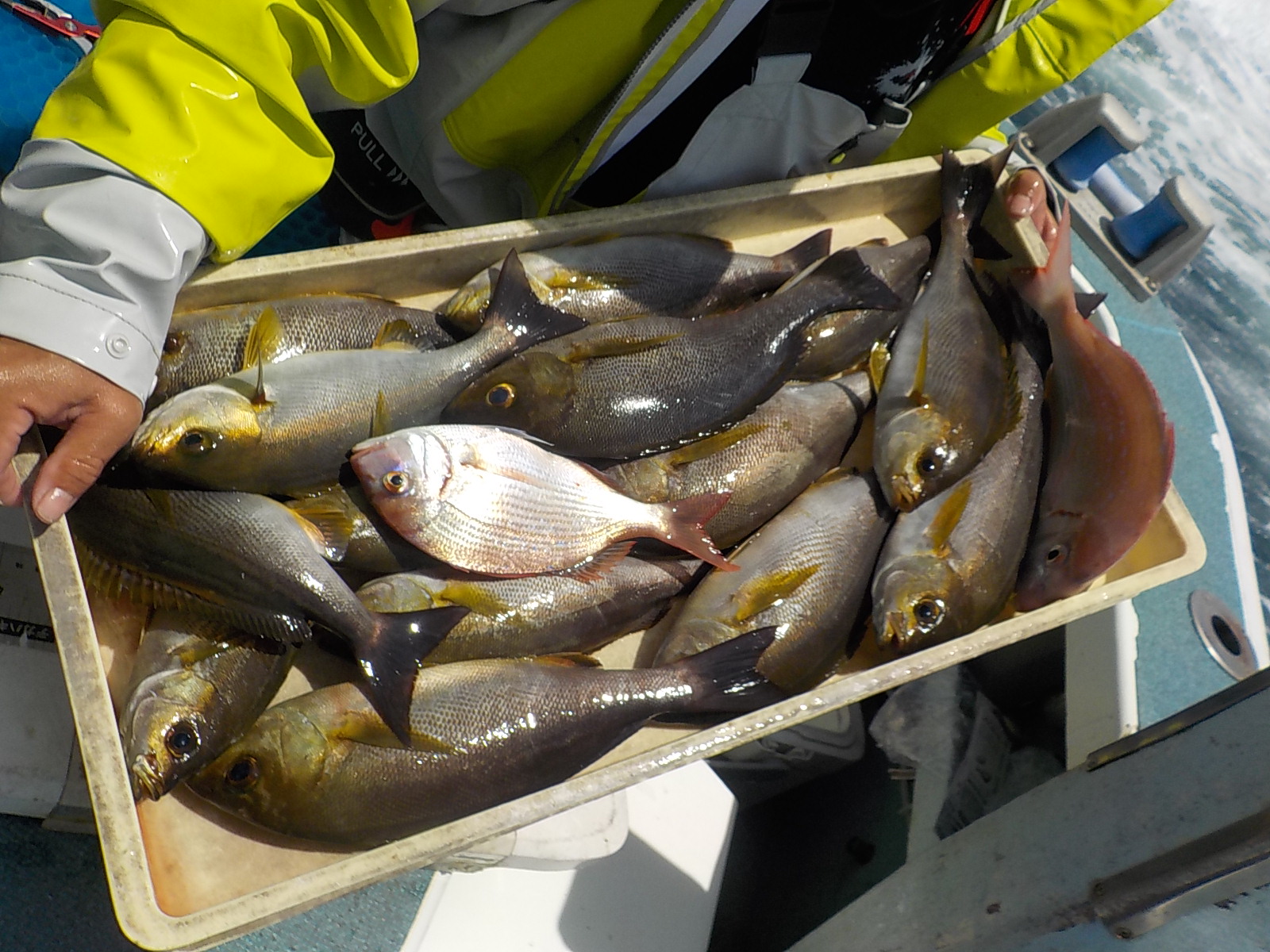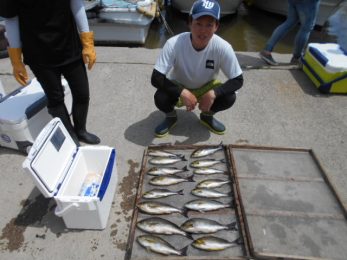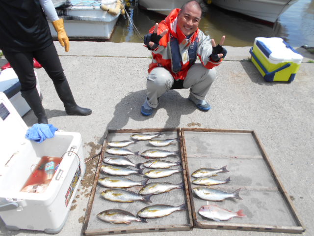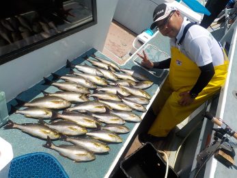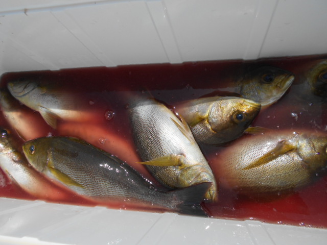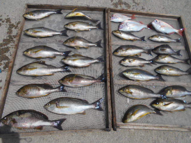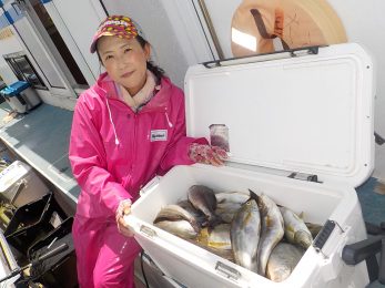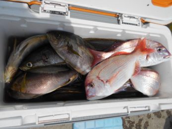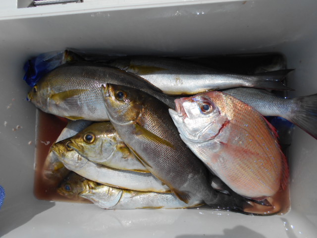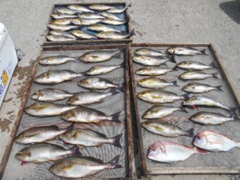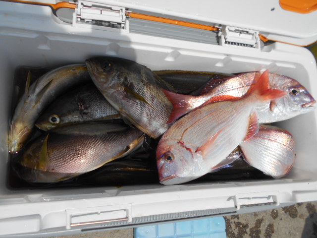 前半は少々波が高くバレも多発でしたが時間が経つにつれて波もなくなりイサキ釣り放題!!