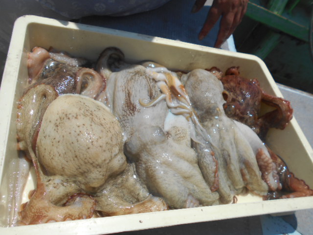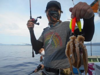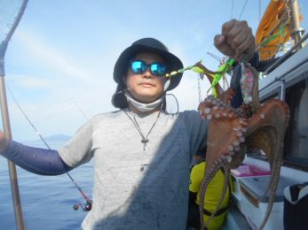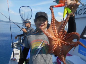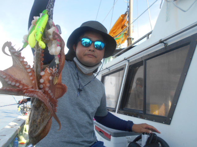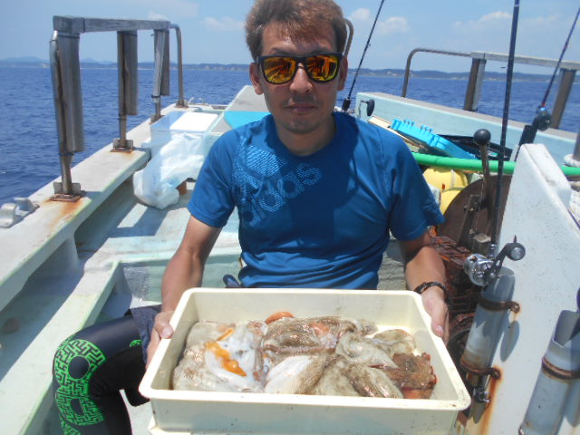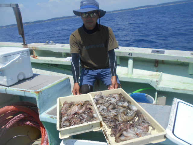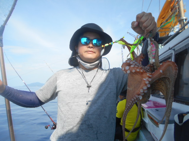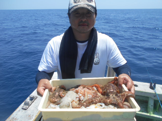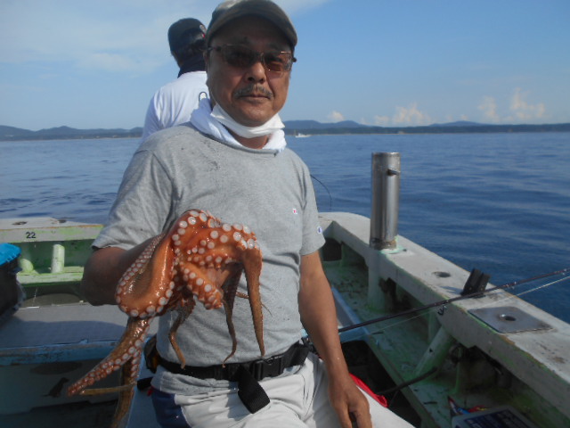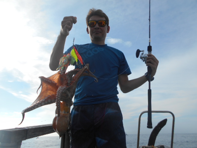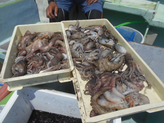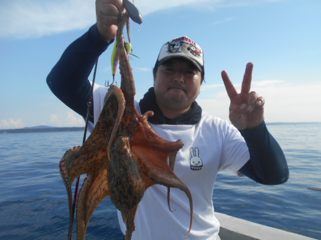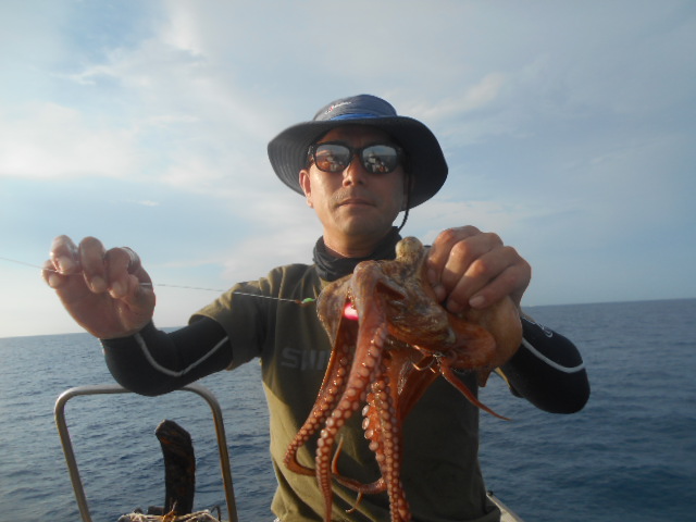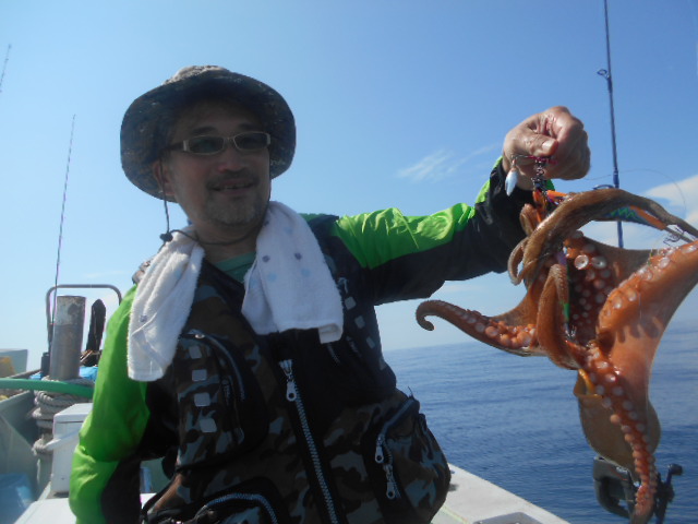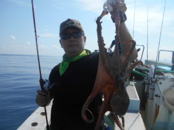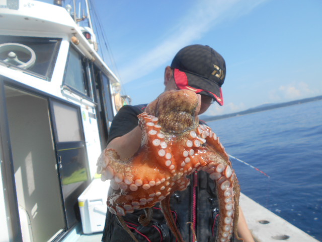 本日もタコ釣りコース出船致しましたよ~! ターゲットは真夏の高級魚タコ! バレも多々ありますが夏ダコ絶好調だ~! 乗った瞬間に竿から手に伝わる重量感・・・船の上まで釣りあげるまでドキドキ感、ハラハラ感満載で興奮しまくり~ 明日も最高のポイントへご案内致します! 爆釣目指して頑張りますよ~乞うご期待! 明日8/2日(月)は平日となりまだまだ空き多数ありますので宜しくお願いします!!