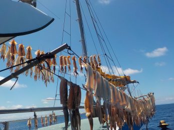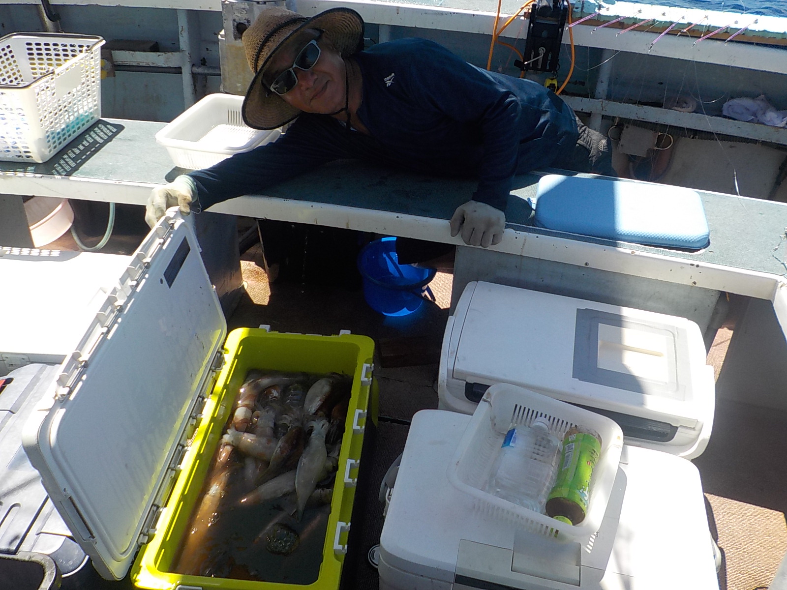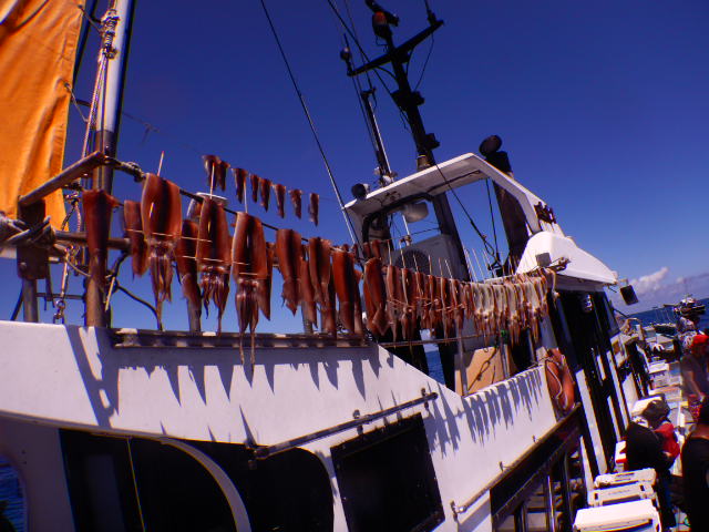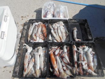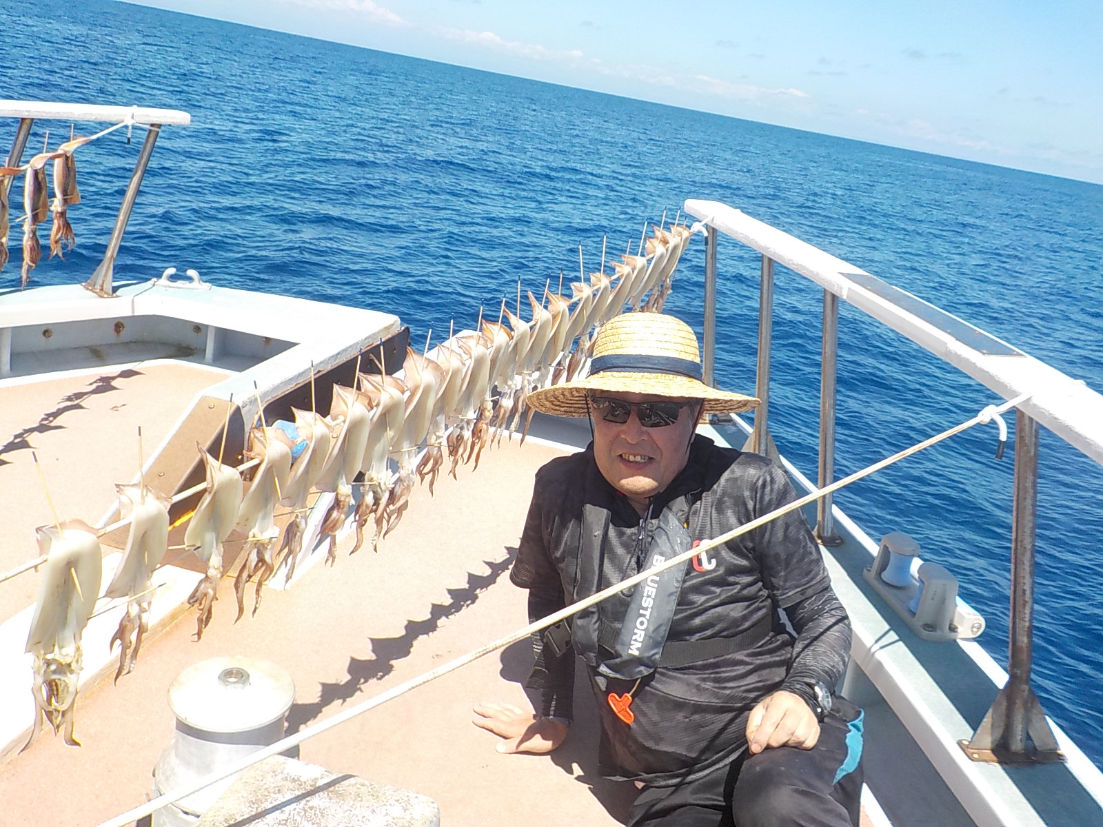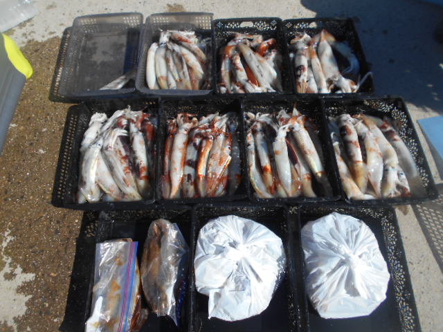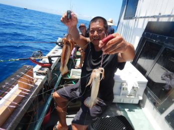 本日もスルメイカ釣りコース大型船2隻で分乗しての出船です!! 竿頭様101匹を頭に大漁でしたね~ 中盤から群れも固まりノリノリ~♪♪釣り放題!! 天気も良く沖干しもたくさん作れました!! 絶好調につき明日も出船!!っと言いたいところですが明日は残念ながら定休日となりお休みです。 次回の出船は明後日8/6日(金)出船致します!! まだまだ空き多数ありますので宜しくお願いします!!