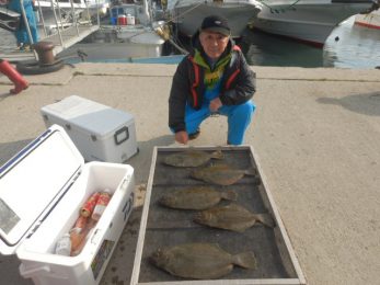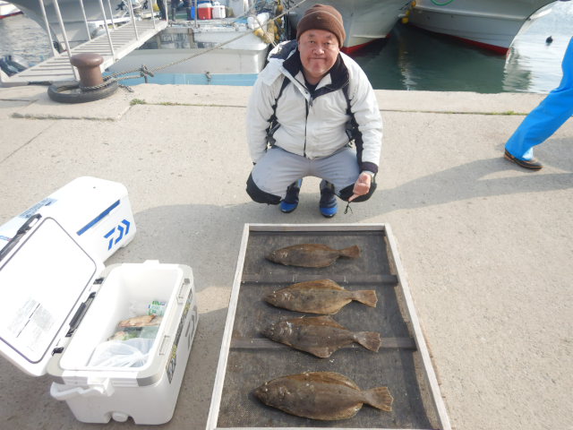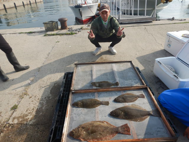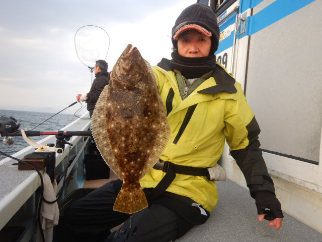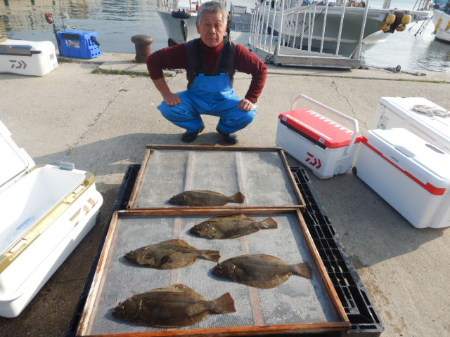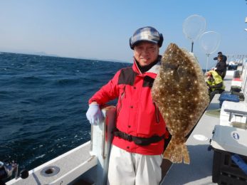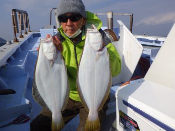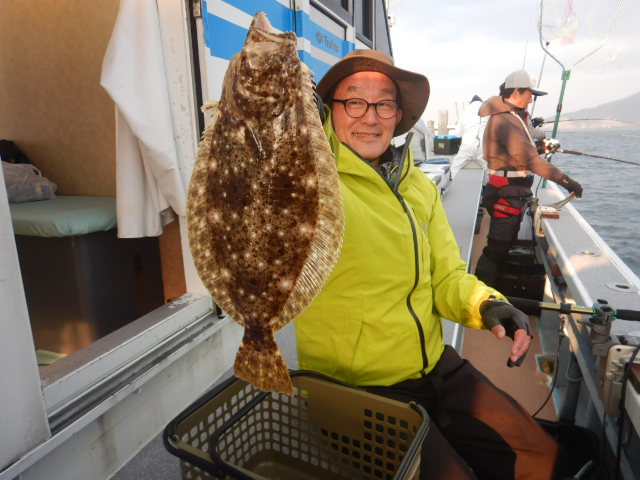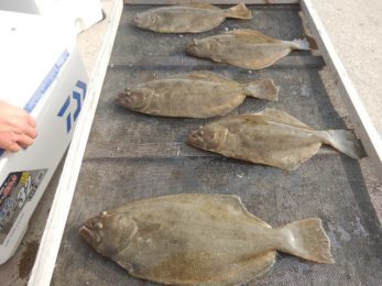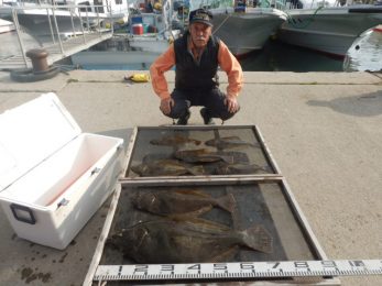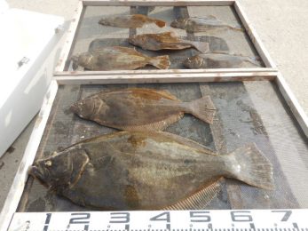 最大73cmの座布団ヒラメを頭に竿頭様7枚!!