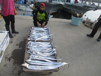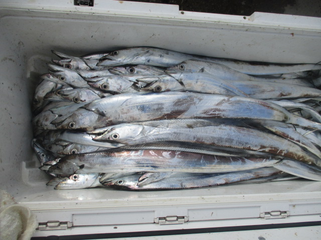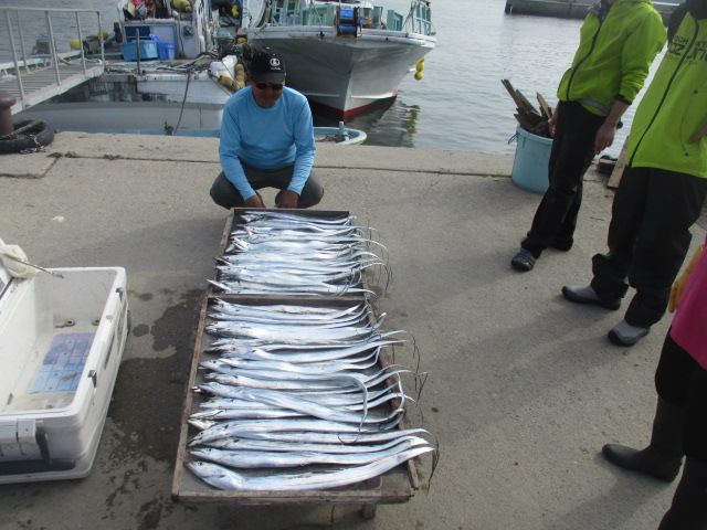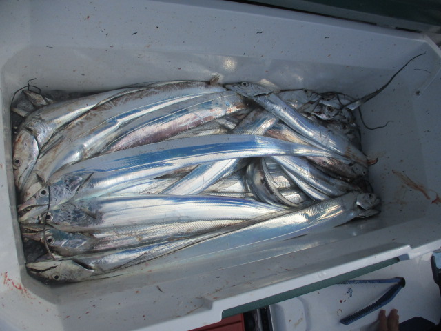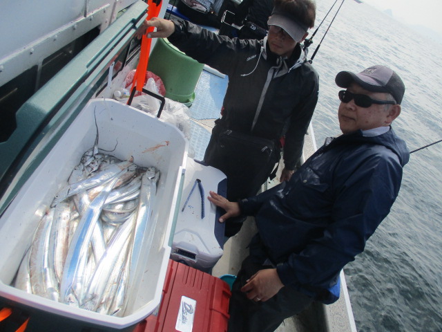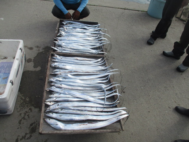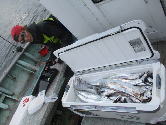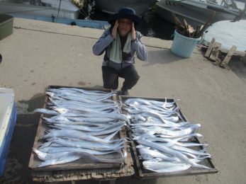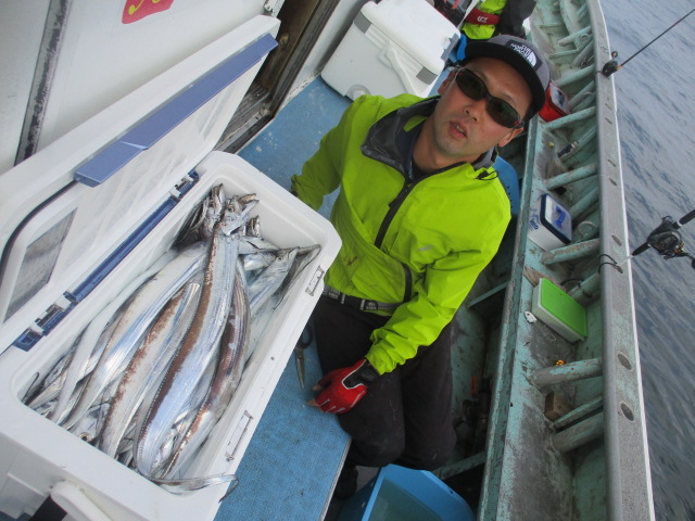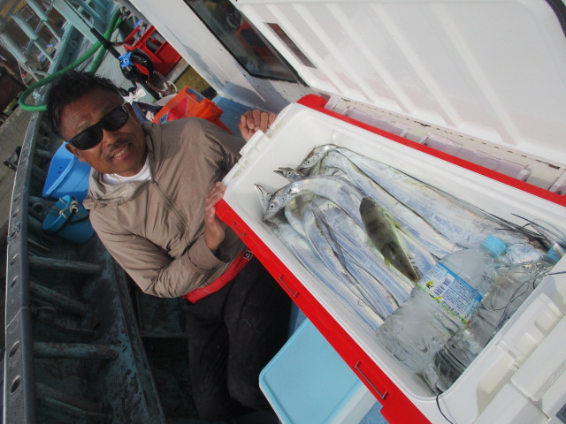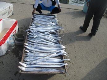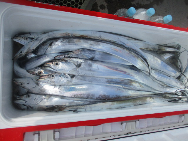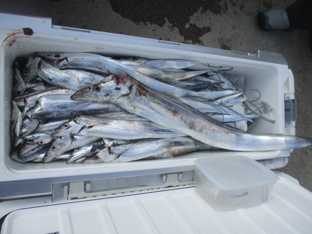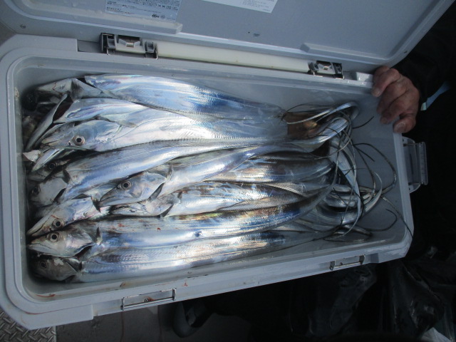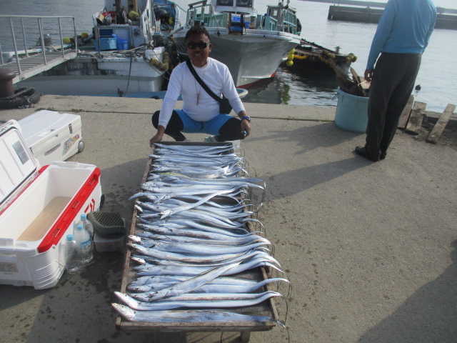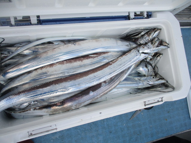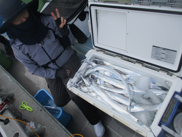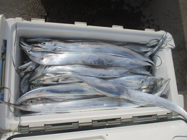 本日もタチウオ釣りコース出船致しましたよ~! タチウオ爆釣劇は続く・・・ 最大指5本サイズを頭に仕掛けを落とせば終始入れ当たり状態が続き皆様クーラー満タン大漁でしたね! 今なら初挑戦の方~慣れた方まで皆様お楽しみ頂けるかと!! 魚影は濃く今年のタチウオ釣りはまだまだ楽しめそうですよ! 当たりもたくさんありますのでエサは多めに持って来て下さいね! 天秤のお客様、テンヤのお客様どちらもお問い合わせください! 皆様是非一度お試しあれ~ 明日11/6日(月)は平日となりまだまだ空き多数ありますので皆様遊びに来てくださいね~