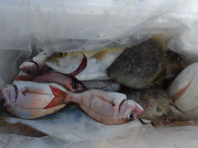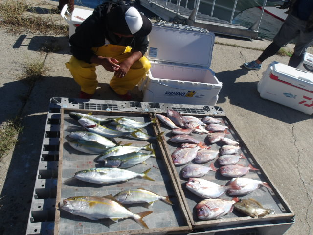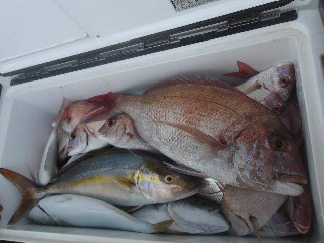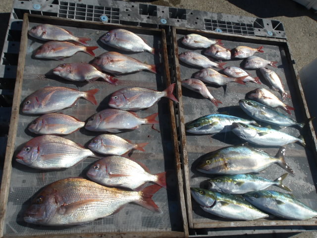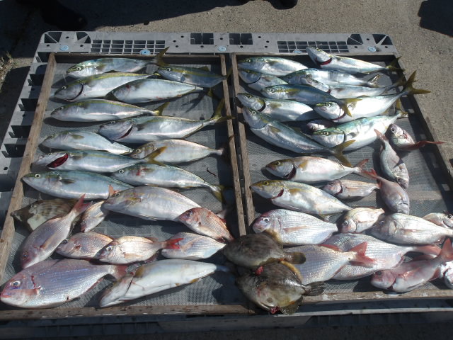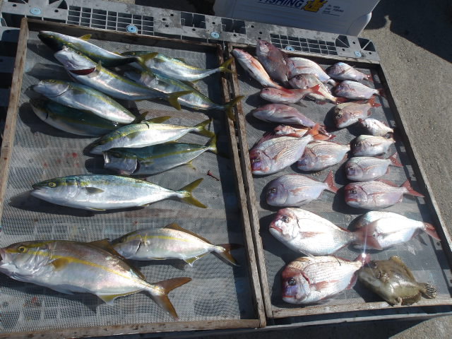 鯛、ハマチ、カンパチ、カワハギなどで今日も爆釣!!