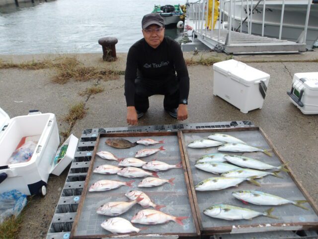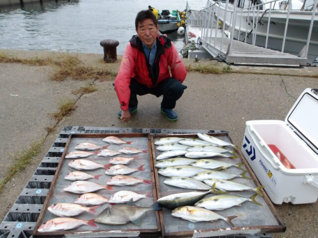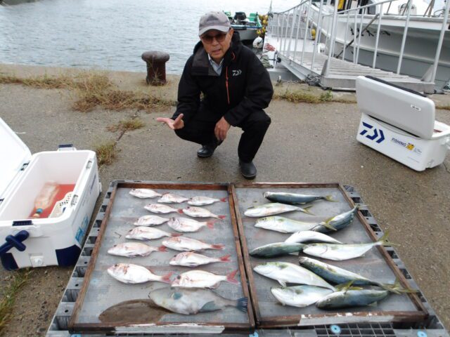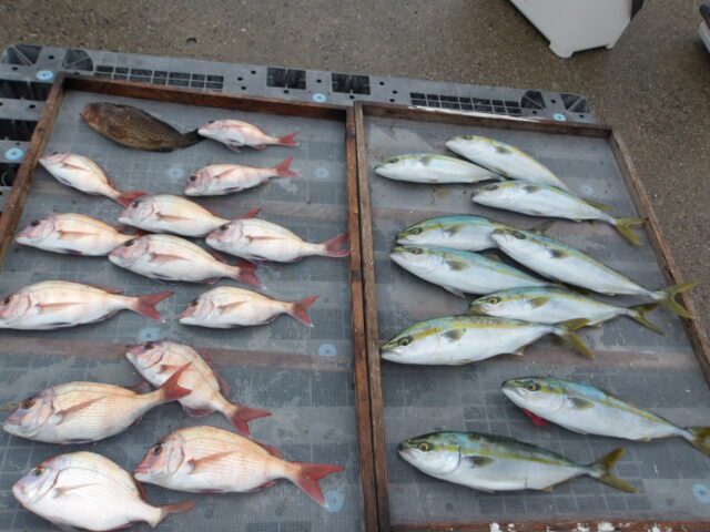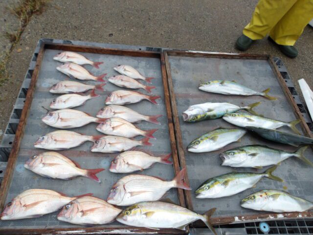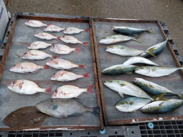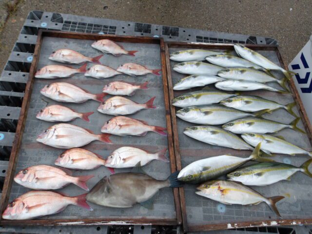 鯛、ハマチ、カンパチ、カワハギなどで今日も爆釣!!