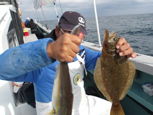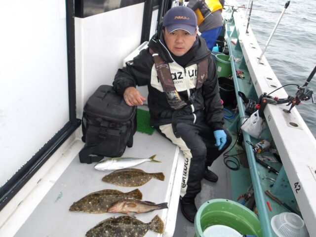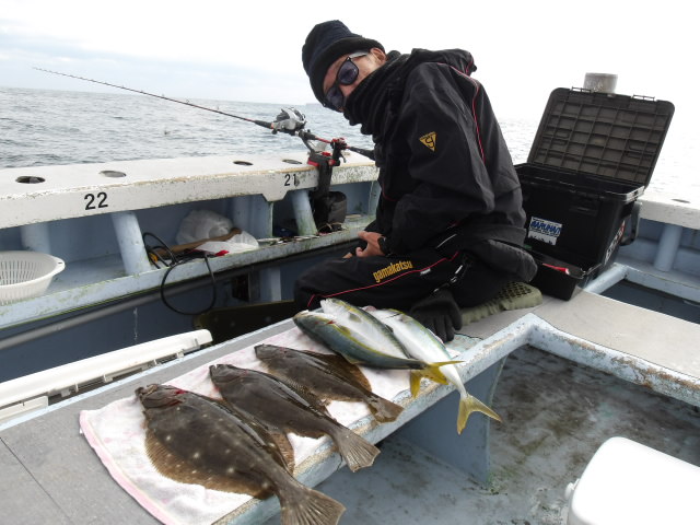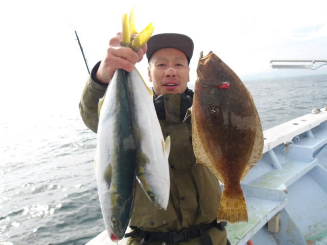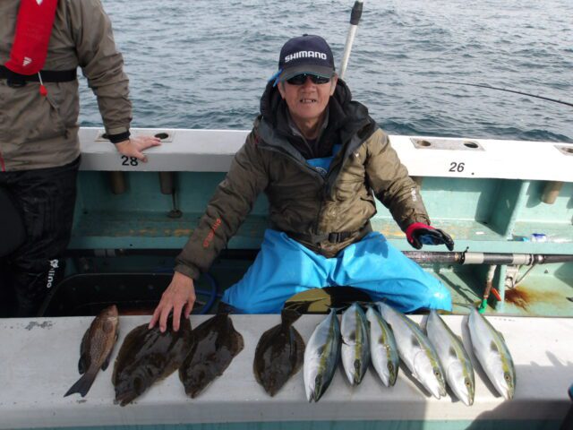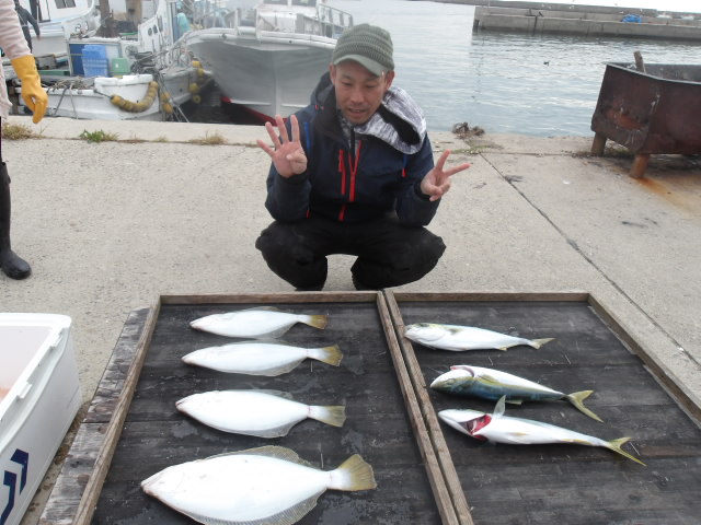 ヒラメ竿頭様4枚を頭にハマチ、ハタ類なども混ざり好調!!