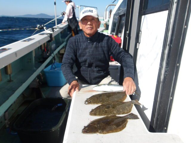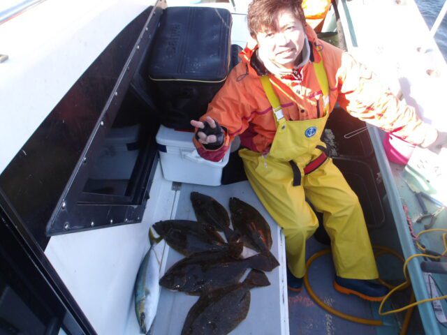 ヒラメ竿頭様8枚を頭にハマチ、コチなども混ざり好調!!