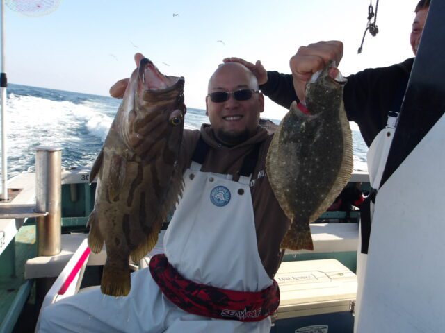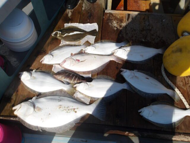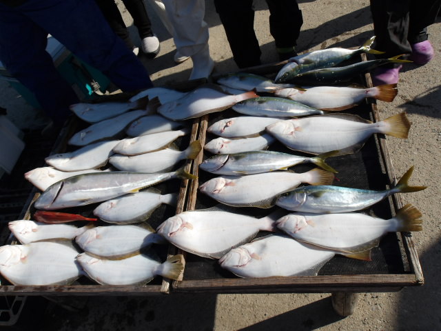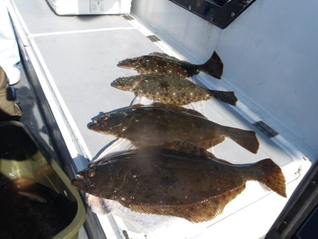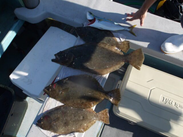 ヒラメ竿頭様7枚を頭にワラサ、ハマチ、コチ、ハタ類なども混ざり好調!!