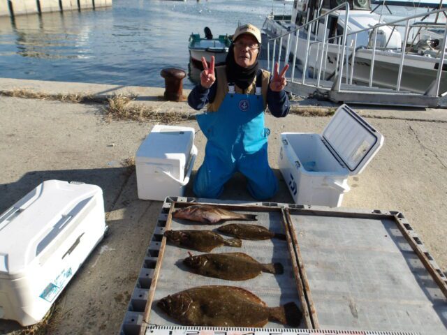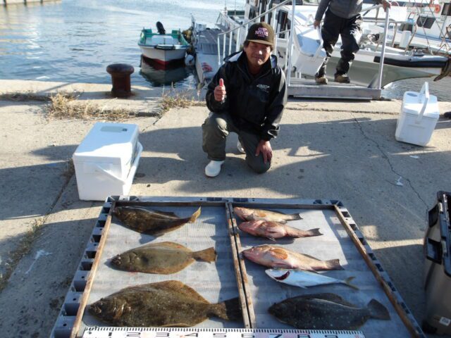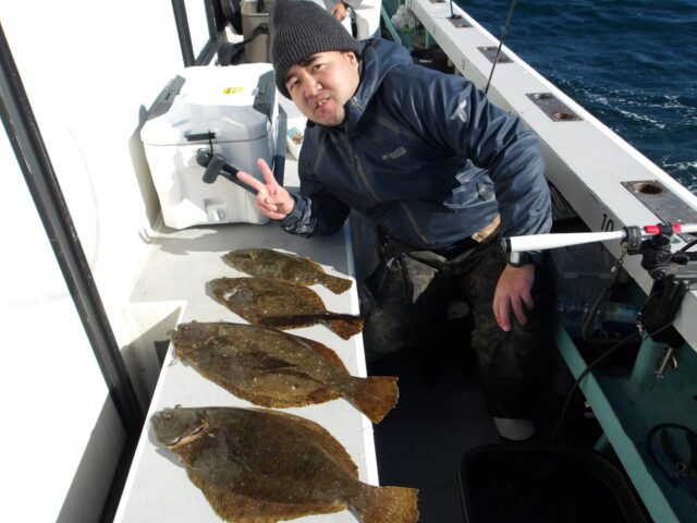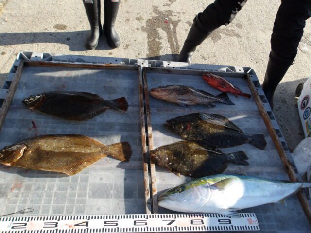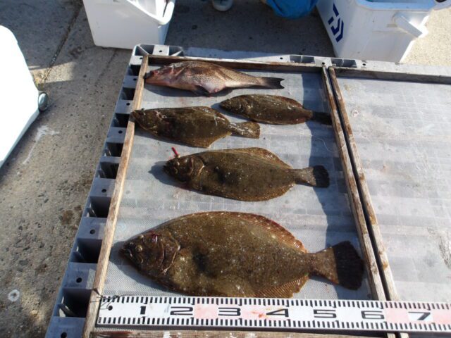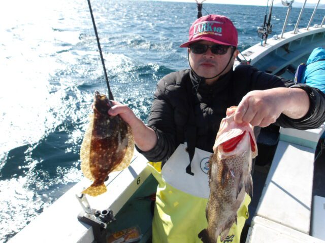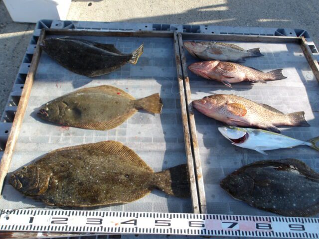 ヒラメ竿頭様5枚を頭にハマチ、ハタ類なども混ざり好調!!