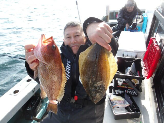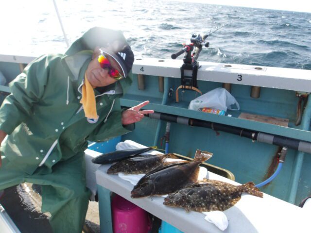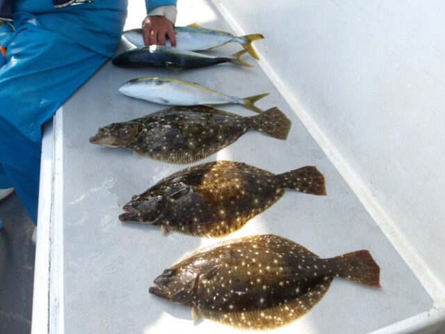 ヒラメ竿頭様5枚を頭にハマチ、ハタ類なども混ざり好調!!