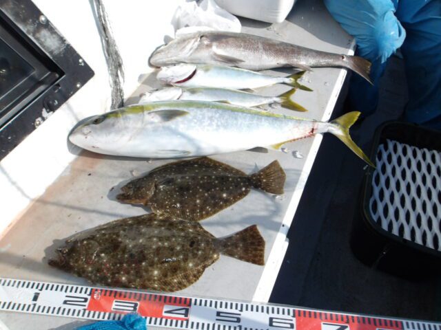 ヒラメ竿頭様6枚を頭にぶり、ハマチ、コチも混ざり良い感じ~