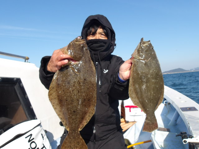 ヒラメ竿頭様4枚を頭にヒラメいいかんじ~