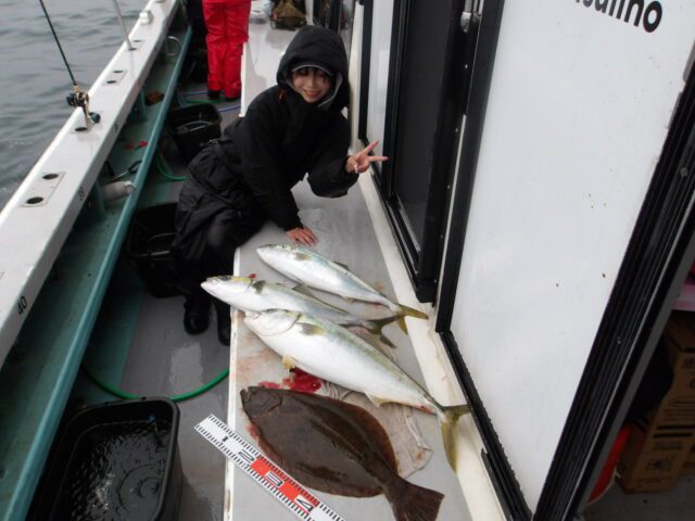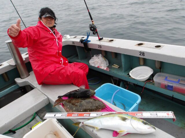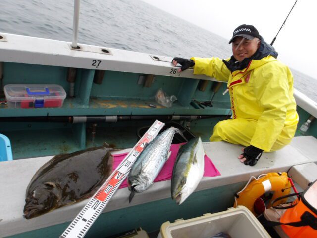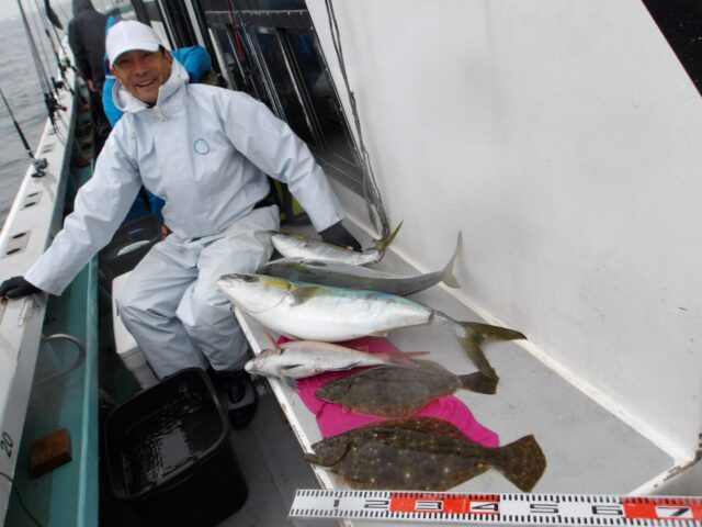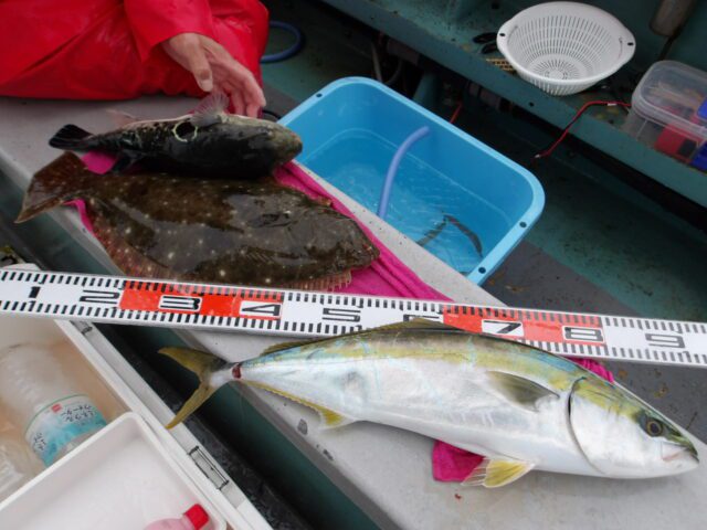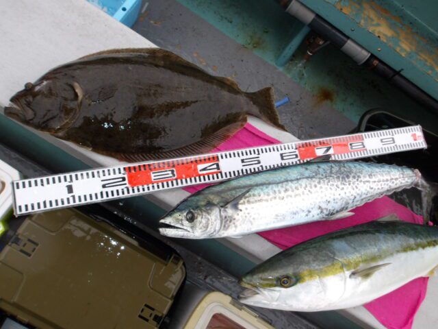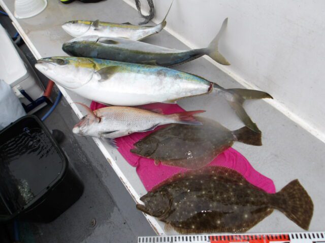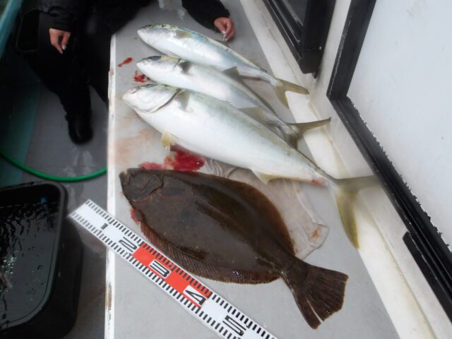 ヒラメも肉厚でデカい!!そして青物ぶり、ワラサ、サワラ、真鯛なども釣れましたよ!!