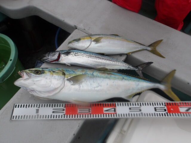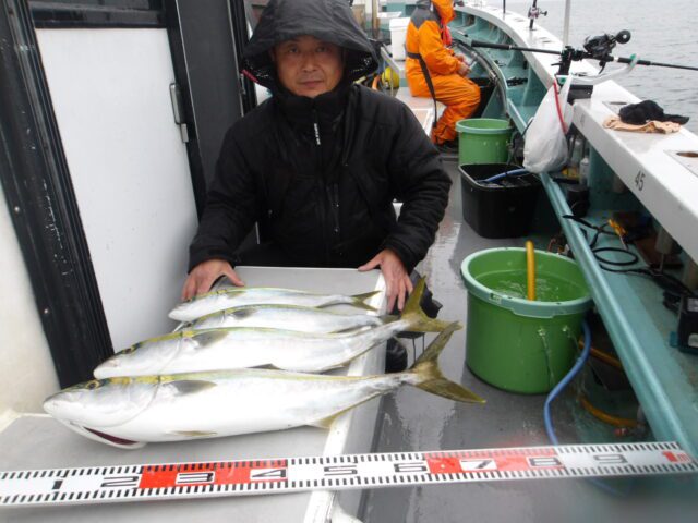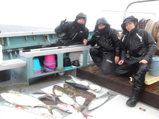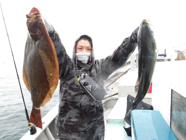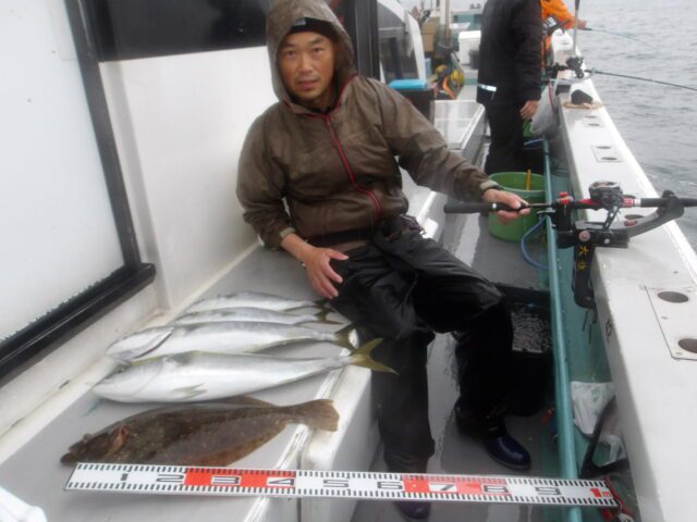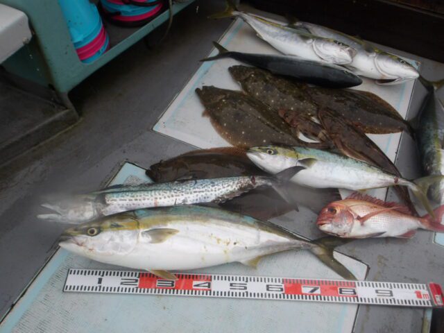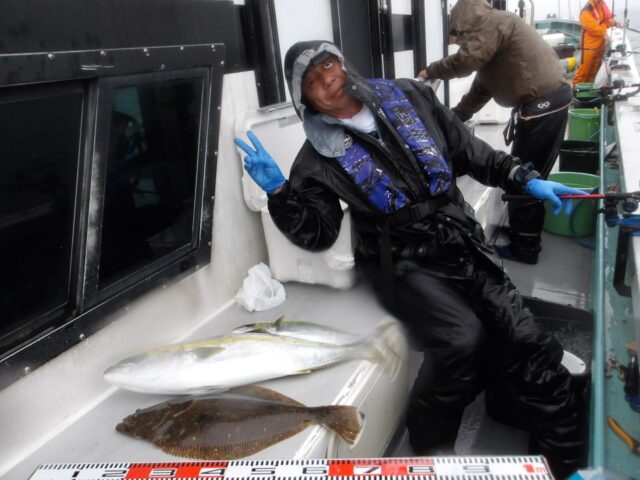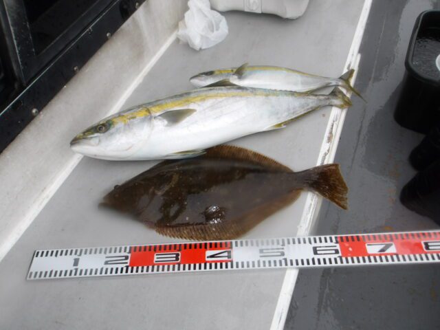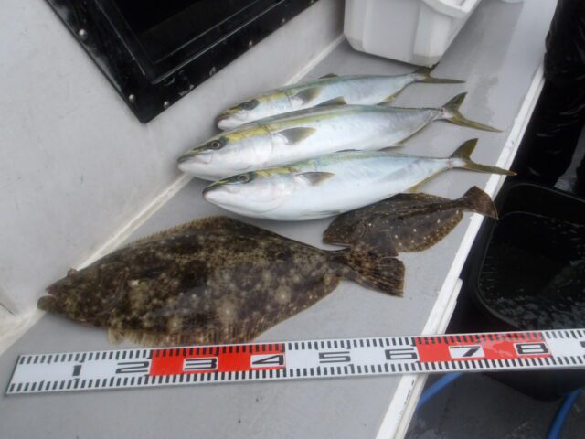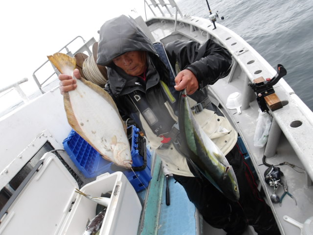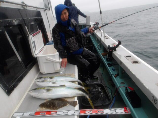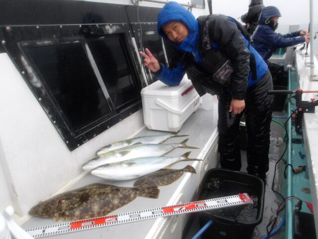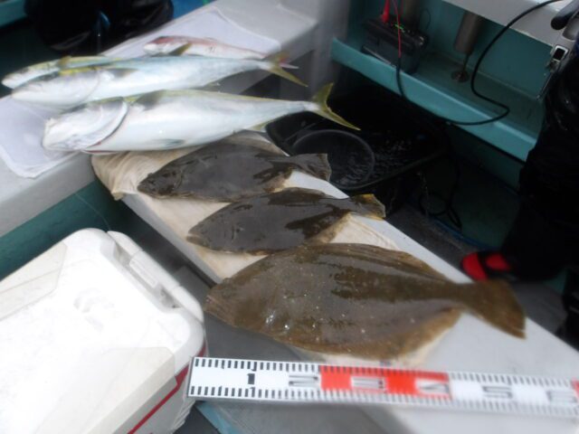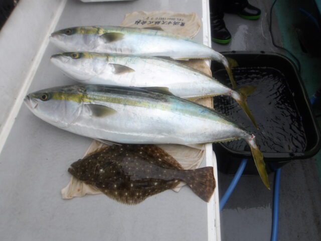 イワシベイトでヒラメ、ぶり、ワラサ、サワラ、真鯛などで釣れ盛りました!!