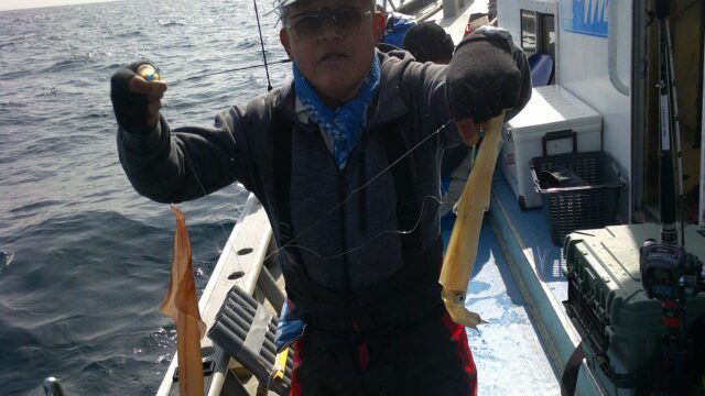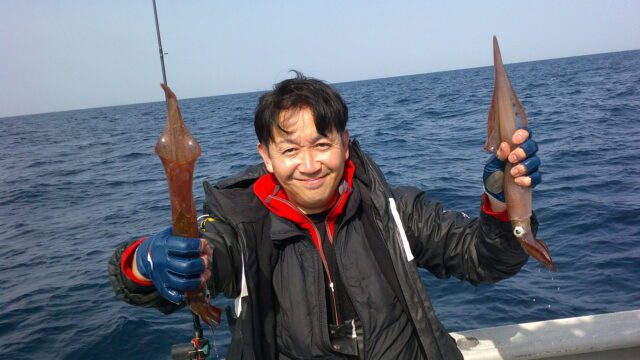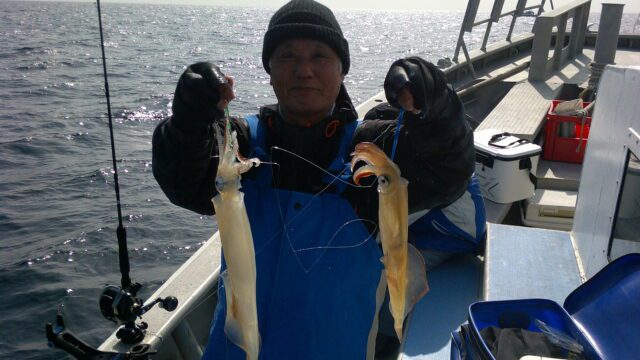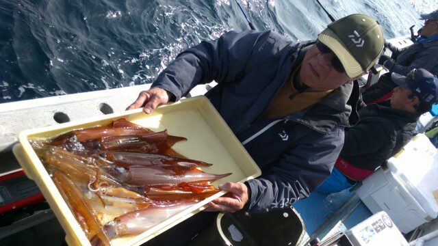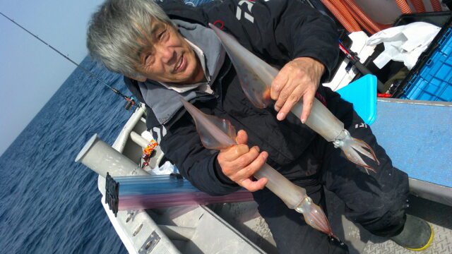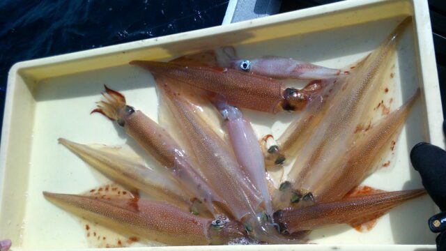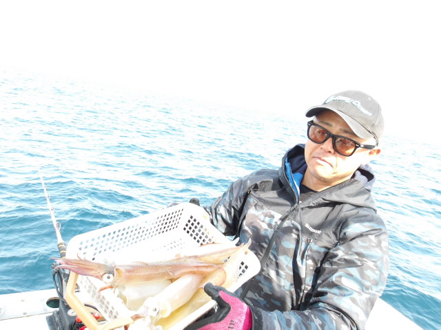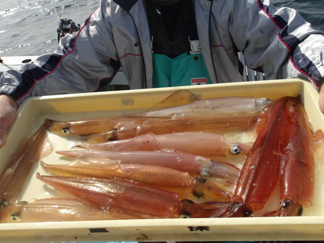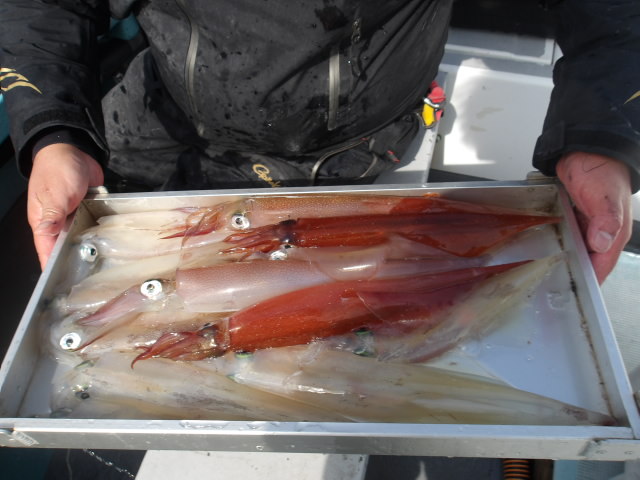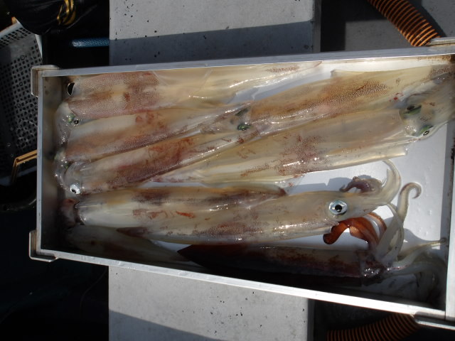 サイズ抜群のヤリイカでしたが今日は魚影あってもノリがいまいちでしたね!