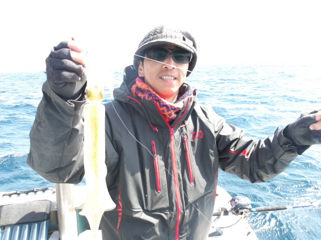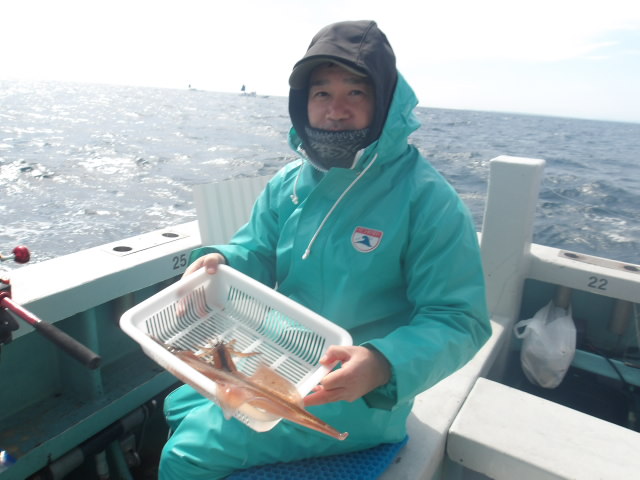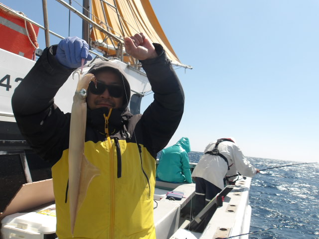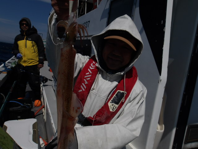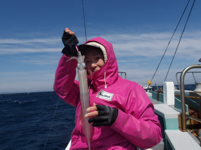 釣れるとパラソル級のヤリイカでしたが、少々活性低め・・・