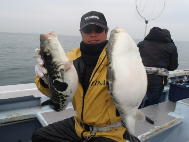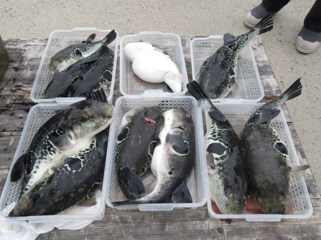 高級魚トラフグ釣れると良型揃い!!