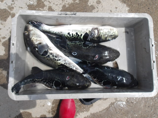 産卵前の荒食いでとらふぐも固まってますよ!